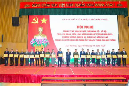 (Haiphong.gov.vn) – Chiều 9/1, UBND thành phố tổ chức Hội nghị tổng kết thực hiện kế hoạch phát triển kinh tế - xã hội, thu - chi ngân sách nhà nước, đầu tư công năm 2025; triển khai nhiệm vụ, giải pháp trọng tâm năm 2026 và Công bố Quyết định điều chỉnh Quy hoạch chung thành phố Hải Phòng đến năm 2040, tầm nhìn đến năm 2050.
