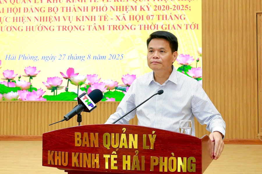 Sáng 27-8, đồng chí Lê Ngọc Châu, Phó Bí thư Thành uỷ, Chủ tịch UBND thành phố chủ trì làm việc với Ban quản lý Khu kinh tế Hải Phòng về kết quả thực hiện Nghị quyết Đại hội Đảng bộ thành phố nhiệm kỳ 2020 - 2025; tình hình thực hiện nhiệm vụ kinh tế - xã hội 7 tháng năm 2025, phương hướng trọng tâm thời gian tới.