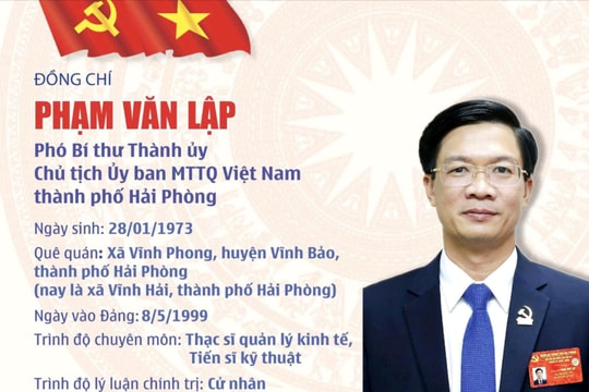 Đồng chí Phạm Văn Lập, Phó bí thư Thành ủy nhiệm kỳ 2020 - 2025, Chủ tịch Ủy ban MTTQ Việt Nam thành phố được chỉ định giữ chức Phó bí thư Thành ủy Hải Phòng nhiệm kỳ 2025 - 2030, giới thiệu đảm nhiệm chức danh Chủ tịch Ủy ban MTTQ Việt Nam thành phố Hải Phòng nhiệm kỳ 2025 - 2030.