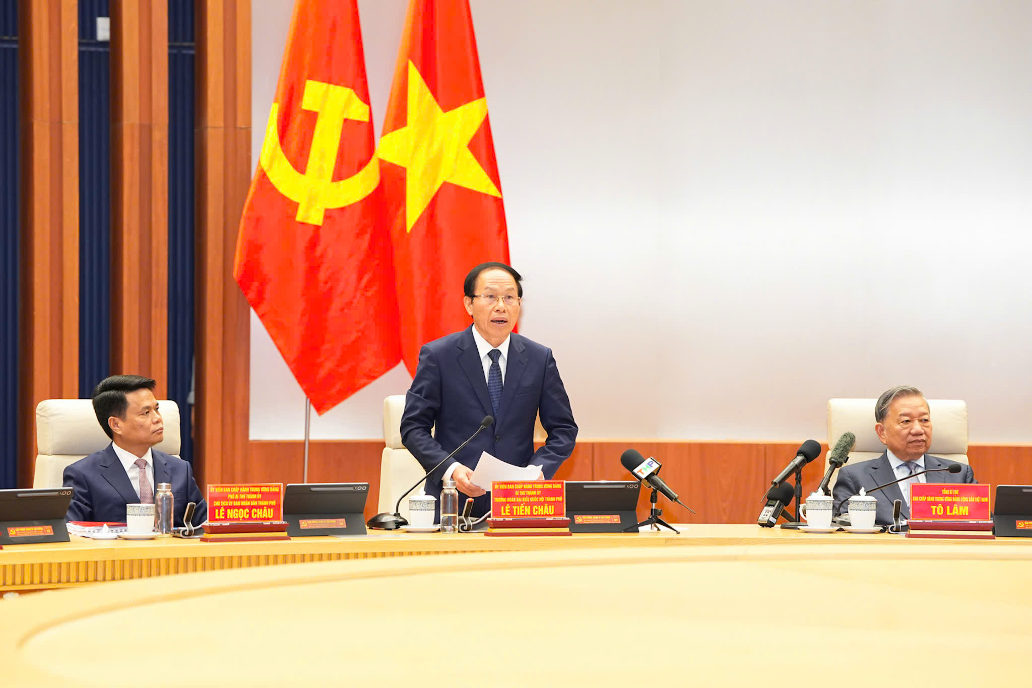 Thay mặt Ban Chấp hành Đảng bộ thành phố, đồng chí Bí thư Thành ủy Lê Tiến Châu tiếp thu, cụ thể hóa đầy đủ các ý kiến chỉ đạo của đồng chí Tổng Bí thư bằng những chương trình, kế hoạch và hành động cụ thể, với tinh thần quyết tâm cao nhất, nỗ lực lớn nhất và hiệu quả thực chất nhất. Tập trung đổi mới mạnh mẽ hơn nữa mô hình phát triển thành phố, nâng cao chất lượng tăng trưởng; phát huy vai trò là trung tâm kinh tế biển, trung tâm công nghiệp và logistics của miền Bắc; đồng thời từng bước xây dựng Hải Phòng trở thành đô thị cảng hiện đại, trung tâm kinh tế biển và cực tăng trưởng quan trọng của cả nước trong giai đoạn tới.