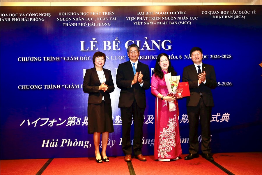 Sáng 13/10, Hội Khoa học phát triển nguồn nhân lực, nhân tài thành phố Hải Phòng phối hợp Sở Khoa học và Công nghệ, Viện Phát triển nguồn nhân lực Việt Nam – Nhật Bản (VJCC) tổ chức bế giảng Chương trình đào tạo giám đốc chiến lược khoá 8 và khai giảng Chương trình đào tạo giám đốc chiến lược khóa 9.