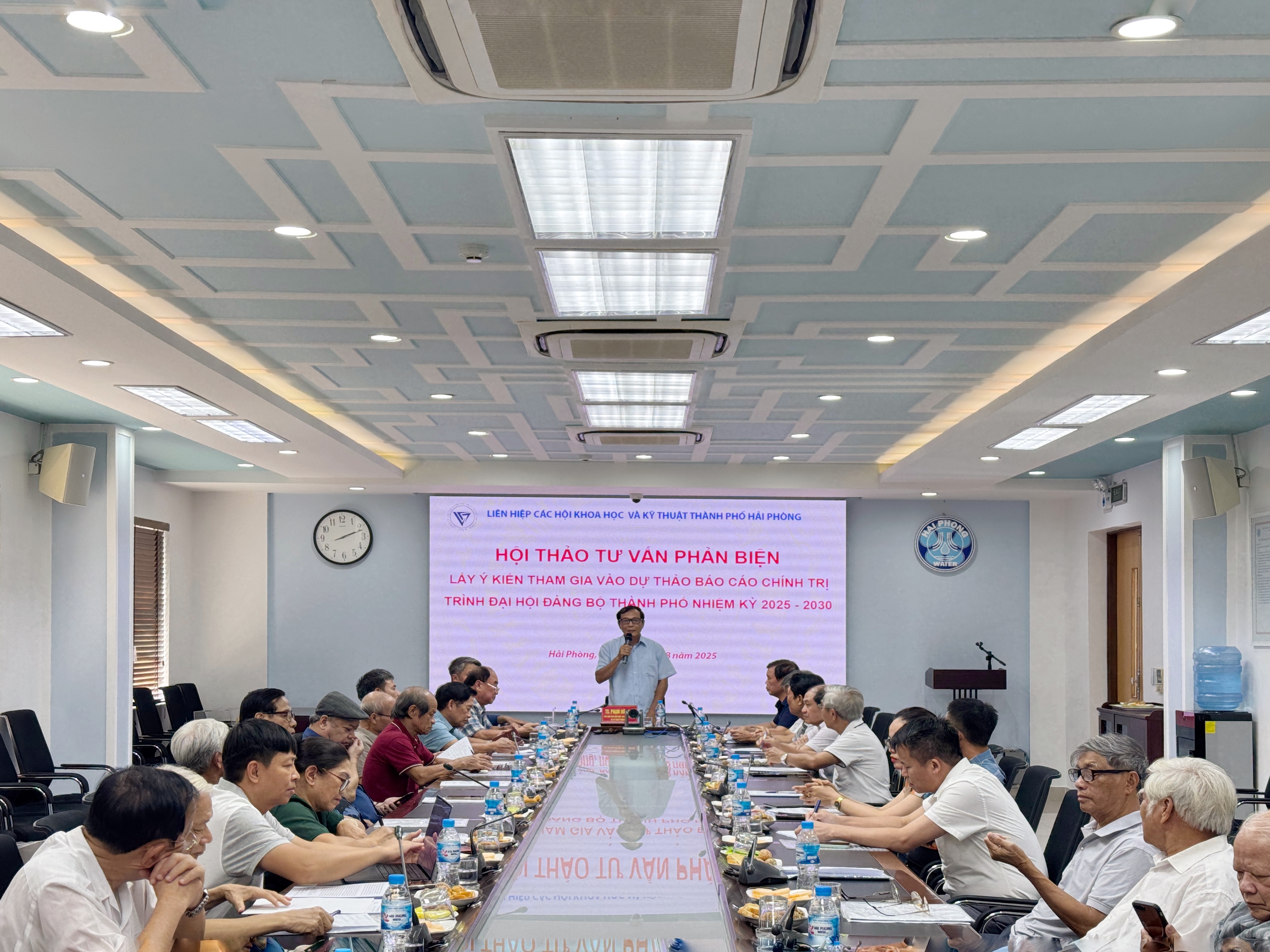 (Haiphong.gov.vn) - Chiều 8/8, Liên hiệp các Hội Khoa học và Kỹ thuật thành phố tổ chức Hội thảo tư vấn phản biện, lấy ý kiến đóng góp vào dự thảo Báo cáo chính trị trình Đại hội Đảng bộ thành phố nhiệm kỳ 2025 – 2030.