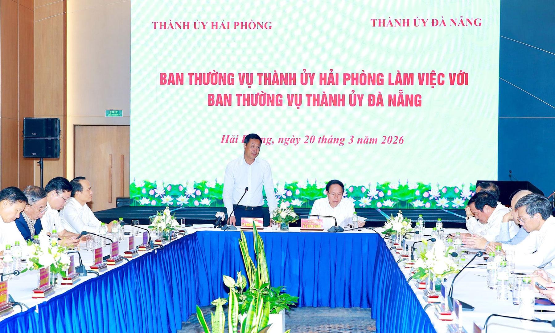 Tại cuộc làm việc, lãnh đạo 2 địa phương đã trao đổi, đánh giá kết quả hợp tác thời gian qua. Hải Phòng và Đà Nẵng là 2 thành phố trực thuộc Trung ương, với tổng dân số hơn 7,7 triệu người, đóng góp khoảng 8,2% GDP cả nước, quy mô kinh tế trên 01 triệu tỷ đồng. Thời gian qua, 2 địa phương duy trì phối hợp trên nhiều lĩnh vực như xây dựng Đảng, phát triển kinh tế, xúc tiến đầu tư, thương mại, du lịch, khoa học công nghệ và đào tạo nguồn nhân lực.
