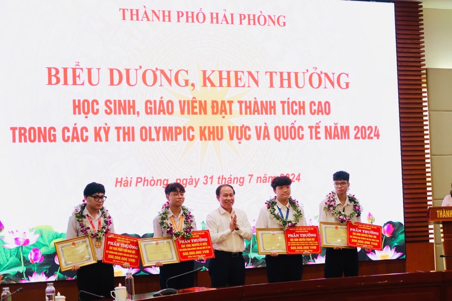 Nghị quyết số 06/2018/NQ-HĐND ngày 12/7/2018 của HĐND thành phố Hải Phòng (cũ) quy định mức thưởng học sinh đoạt giải nhất quốc tế lên tới 500 triệu đồng, học sinh đoạt giải nhất kỳ thi khu vực 300 triệu đồng, giải nhất kỳ thi quốc gia 50 triệu đồng. Giáo viên giảng dạy trực tiếp học sinh đạt giải được thưởng bằng 50% tổng mức thưởng của học sinh theo số lượng và chất lượng giải.