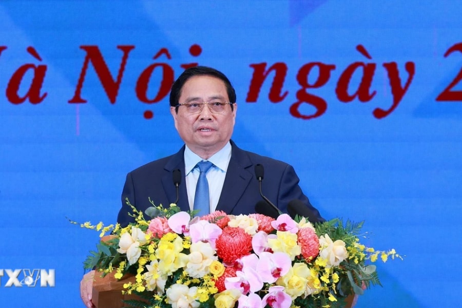 Thủ tướng Phạm Minh Chính chia sẻ quá trình chỉ đạo sát sao, nhất là sự điều chỉnh trong chính sách và tổ chức thực hiện, cũng như sự vào cuộc sáng tạo của các bộ, ngành, địa phương, tổ chức chính trị xã hội, doanh nghiệp trong triển khai Chương trình và phong trào thi đua “Cả nước chung tay xóa nhà tạm, nhà dột nát" và ý nghĩa to lớn của chương trình.
