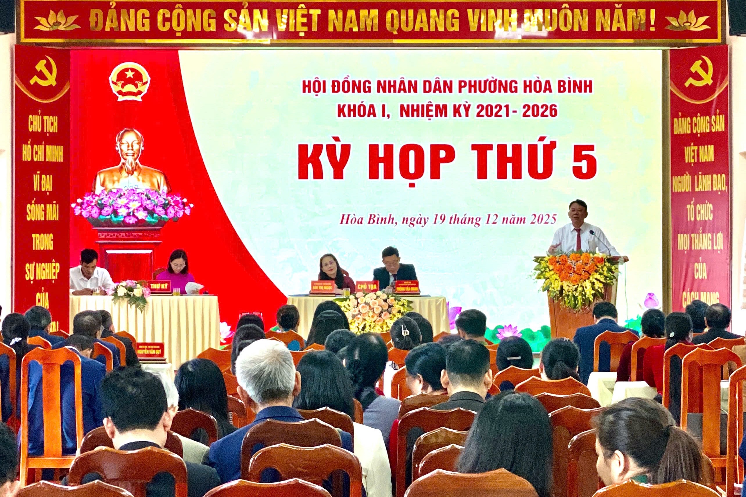 (Haiphong.gov.vn) – Sáng 19/12, Hội đồng nhân dân (HĐND) phường Hòa Bình khóa I, nhiệm kỳ 2021 - 2026 tổ chức Kỳ họp thứ 5 nhằm đánh giá kết quả thực hiện nhiệm vụ năm 2025 và quyết định phương hướng, mục tiêu phát triển giai đoạn tới.