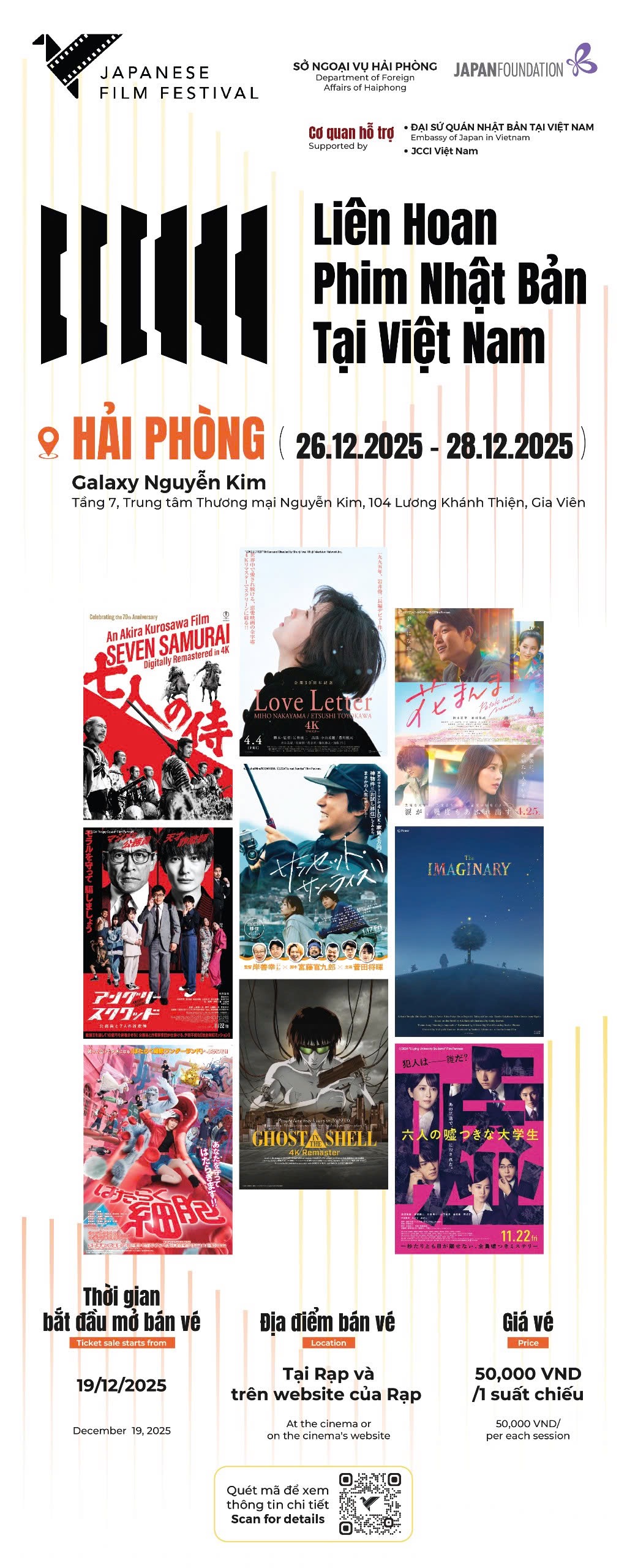 Diễn ra từ ngày 26 đến hết ngày 28/12, LHP Nhật Bản tại Hải Phòng năm 2025 kỳ vọng sẽ tiếp tục là điểm hẹn văn hóa hấp dẫn, mang đến cho người xem những trải nghiệm thú vị và những góc nhìn mới mẻ về nền điện ảnh đất nước mặt trời mọc./.