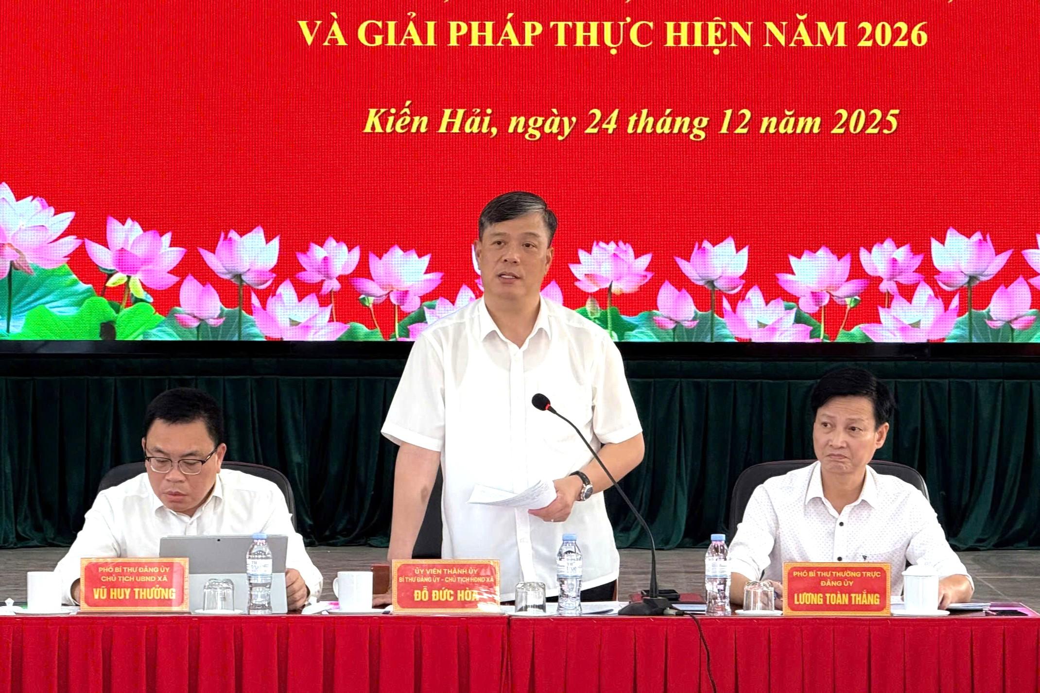 (Haiphong.gov.vn) - Chiều 24/12, Đảng ủy xã Kiến Hải tổ chức Hội nghị Ban Chấp hành Đảng bộ xã lần thứ hai, tổng kết, đánh giá tình hình, kết quả thực hiện nhiệm vụ công tác năm 2025; chỉ tiêu, phương hướng, nhiệm vụ và giải pháp thực hiện năm 2026. Đồng chí Đỗ Đức Hòa, Bí thư Đảng ủy, Chủ tịch HĐND xã chủ trì Hội nghị.