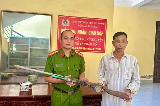 Một người dân ở xã Hà Bắc (thành phố Hải Phòng) đã giao nộp khẩu súng tự chế nhặt được trong vườn ổi cho Công an xã.