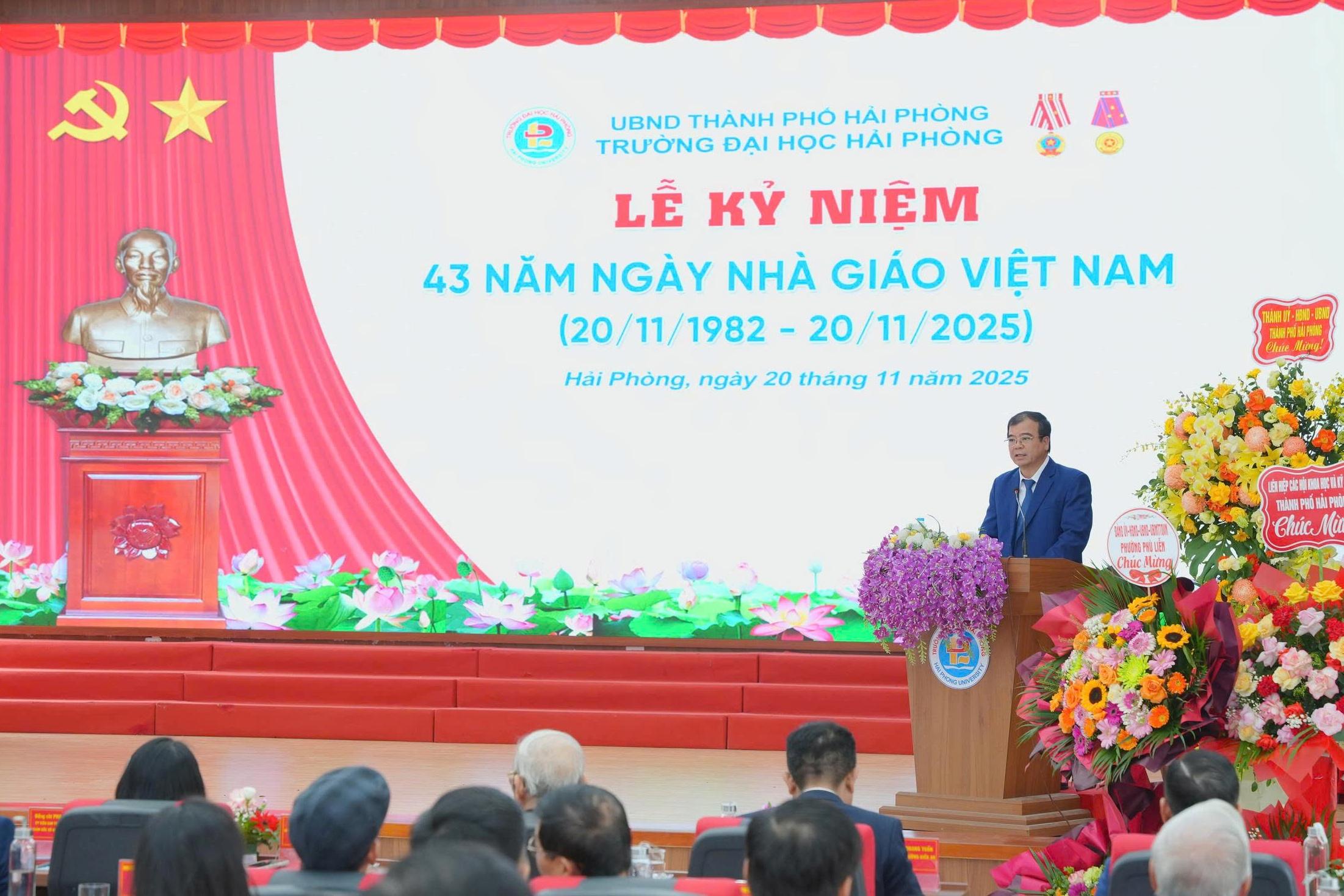 (Haiphong.gov.vn) - Sáng 20/11, Trường Đại học Hải Phòng tổ chức Lễ kỷ niệm 43 năm Ngày Nhà giáo Việt Nam (20/11/1982 – 20/11/2025). Phó Chủ tịch UBND thành phố Nguyễn Minh Hùng tới dự.