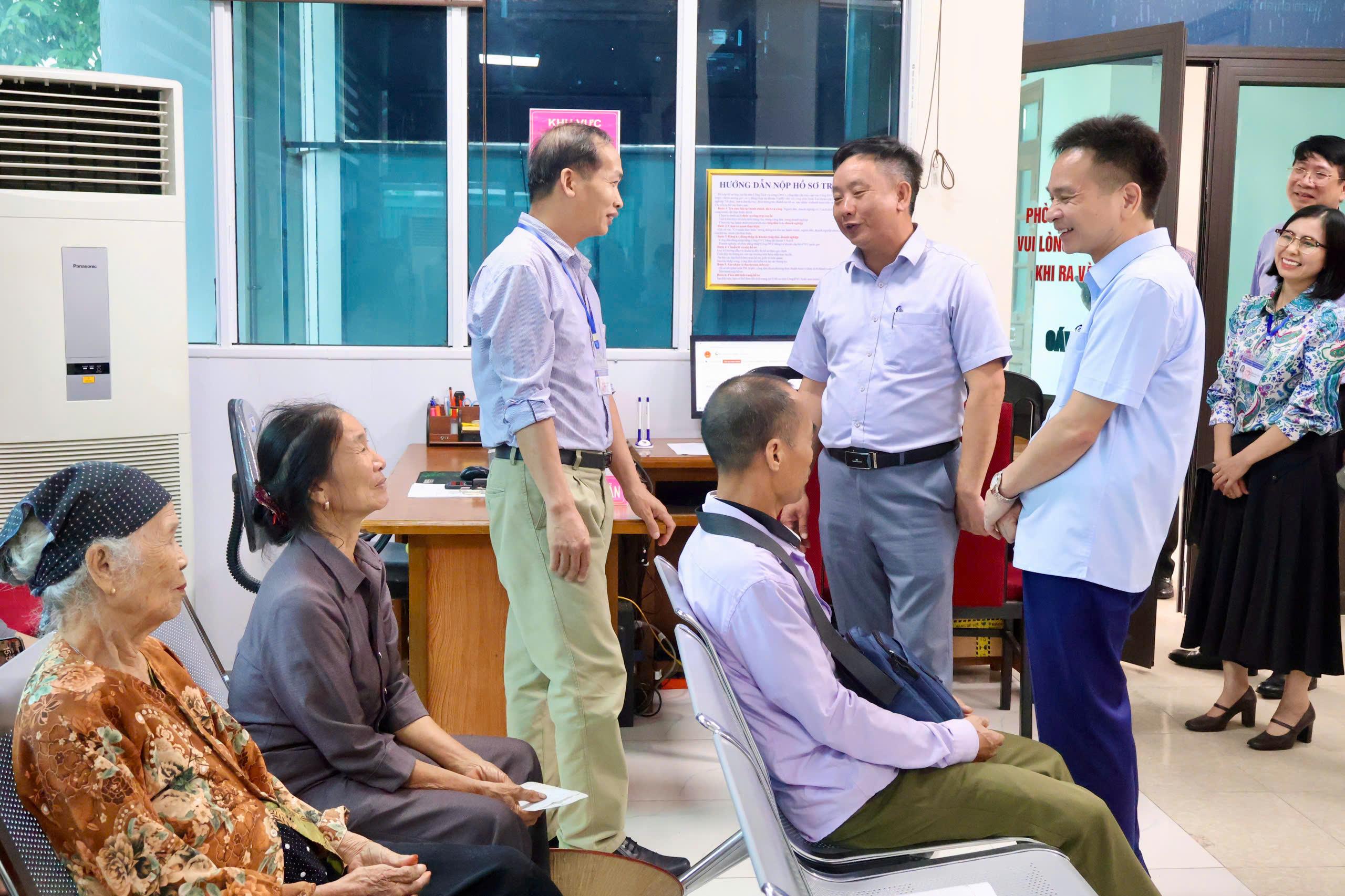 Phó Chủ tịch UBND thành phố Trần Văn Quân trò chuyện với người dân tại Trung tâm Phục vụ hành chính công xã Hà Bắc