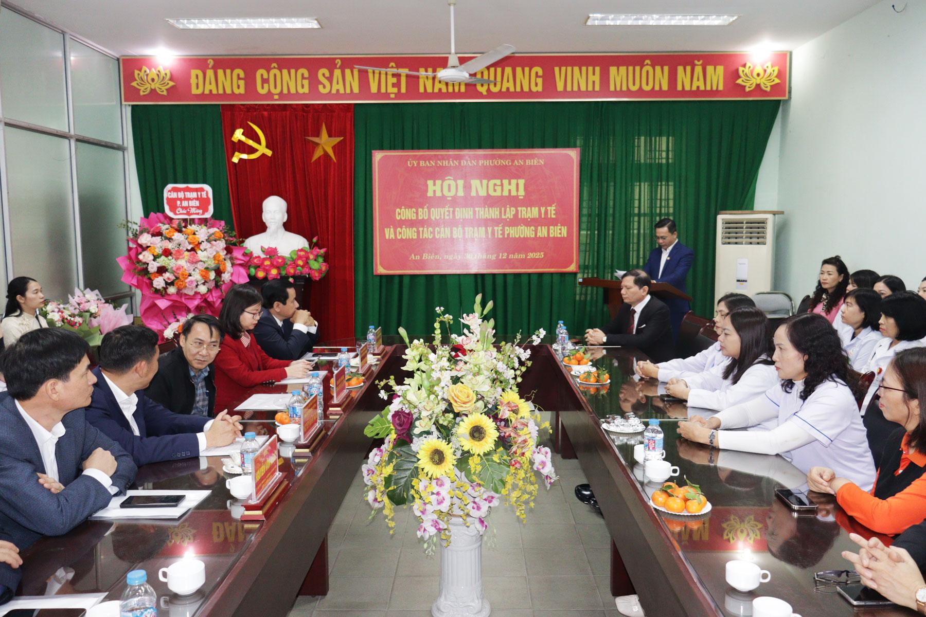 Tại Hội nghị, UBND phường công bố Quyết định thành lập Trạm Y tế phường An Biên là đơn vị sự nghiệp y tế công lập trực thuộc UBND phường; chịu sự chỉ đạo, quản lý trực tiếp về tổ chức bộ máy, nhân lực, tài sản, tài chính của UBND phường; đồng thời chịu sự chỉ đạo, hỗ trợ, hướng dẫn, kiểm tra về chuyên môn, nghiệp vụ của Sở Y tế và các đơn vị liên quan theo quy định của pháp luật. Trụ sở chính tại số 280 Trần Nguyên Hãn.
