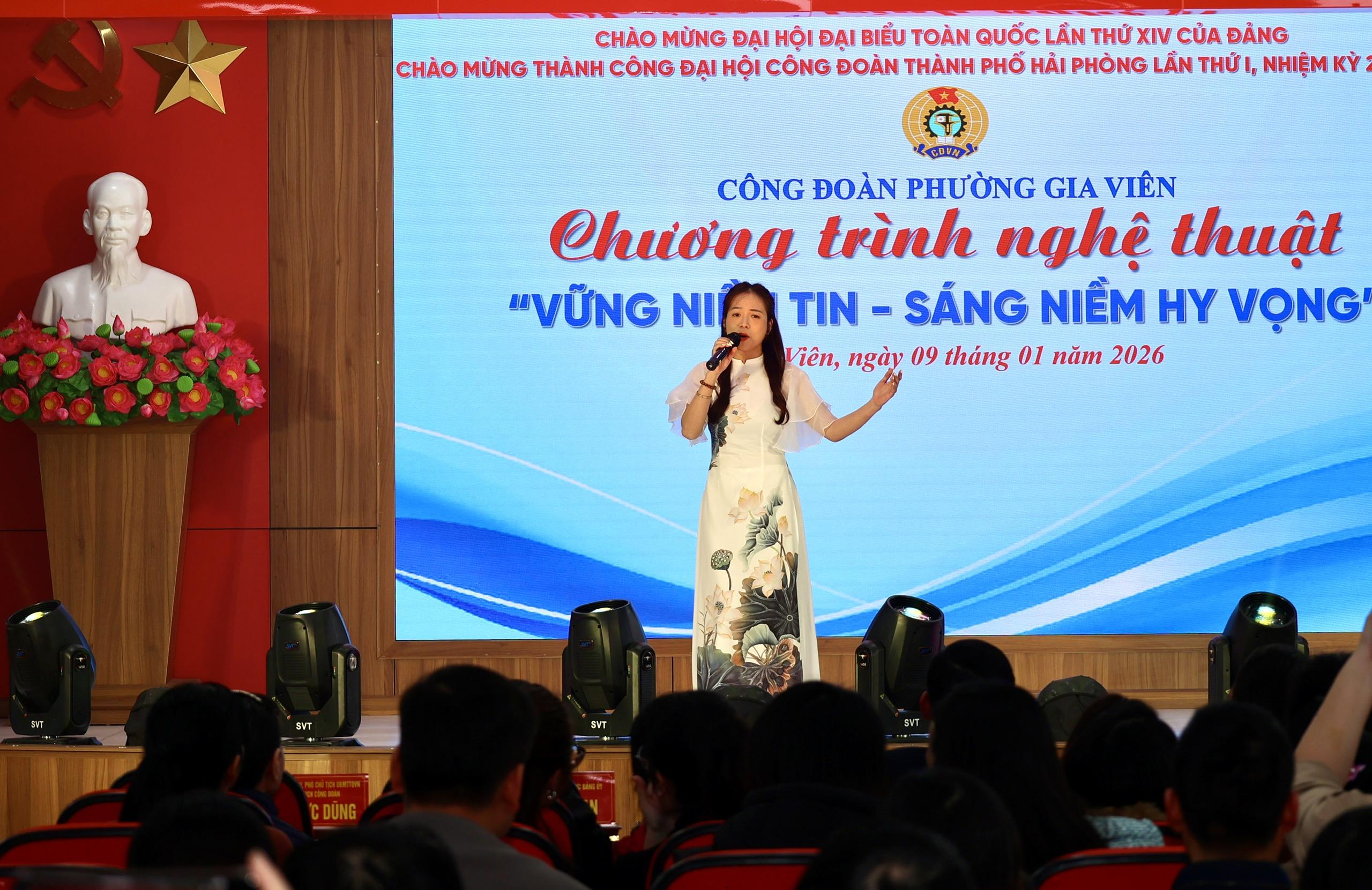 (Haiphong.gov.vn) - Chiều 9/1, Công đoàn phường Gia Viên tổ chức chương trình Liên hoan nghệ thuật với chủ đề “Vững niềm tin – Sáng niềm hy vọng” chào mừng thành công Đại hội Công đoàn thành phố Hải Phòng và hướng tới chào mừng Đại hội đại biểu toàn quốc lần thứ XIV của Đảng.