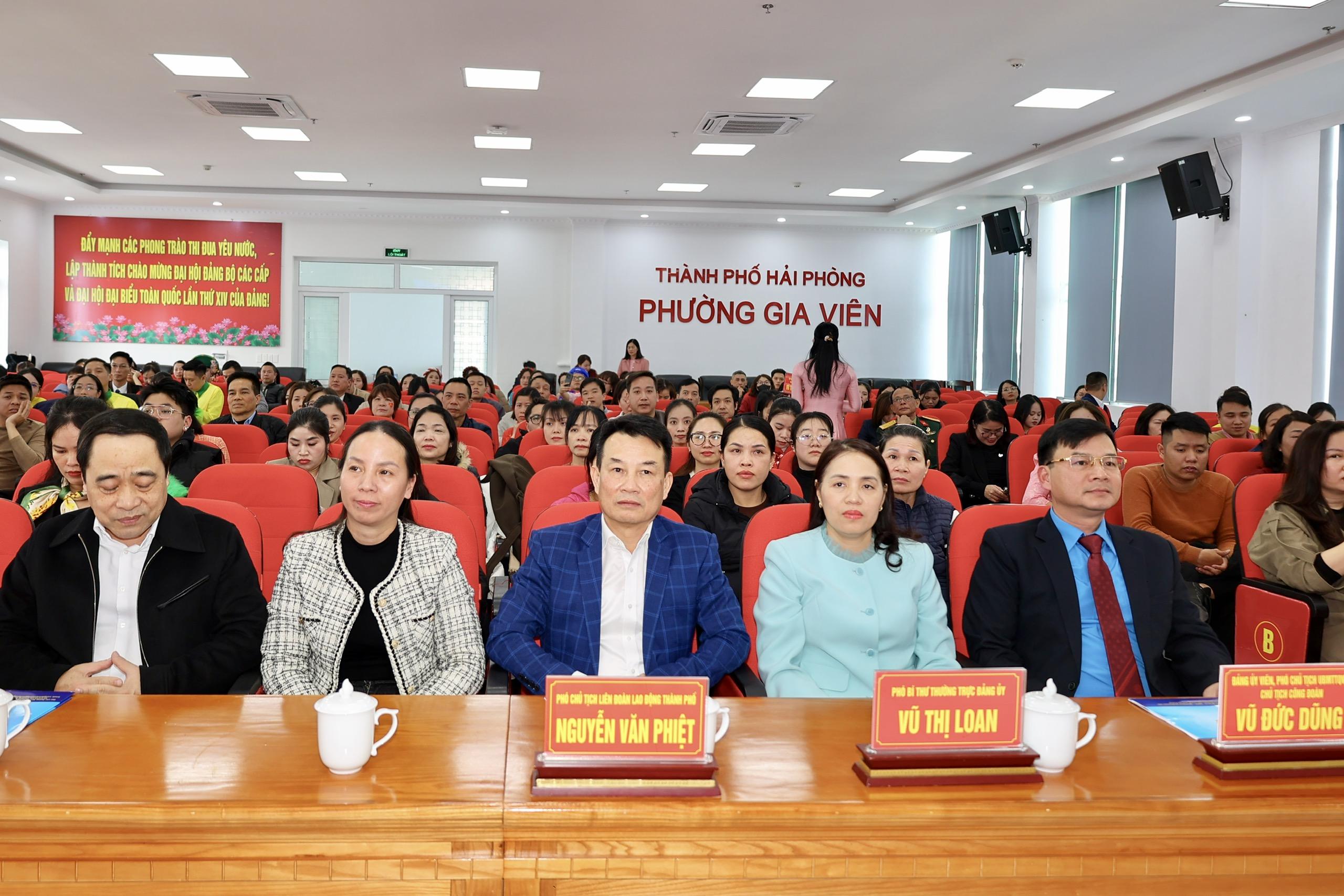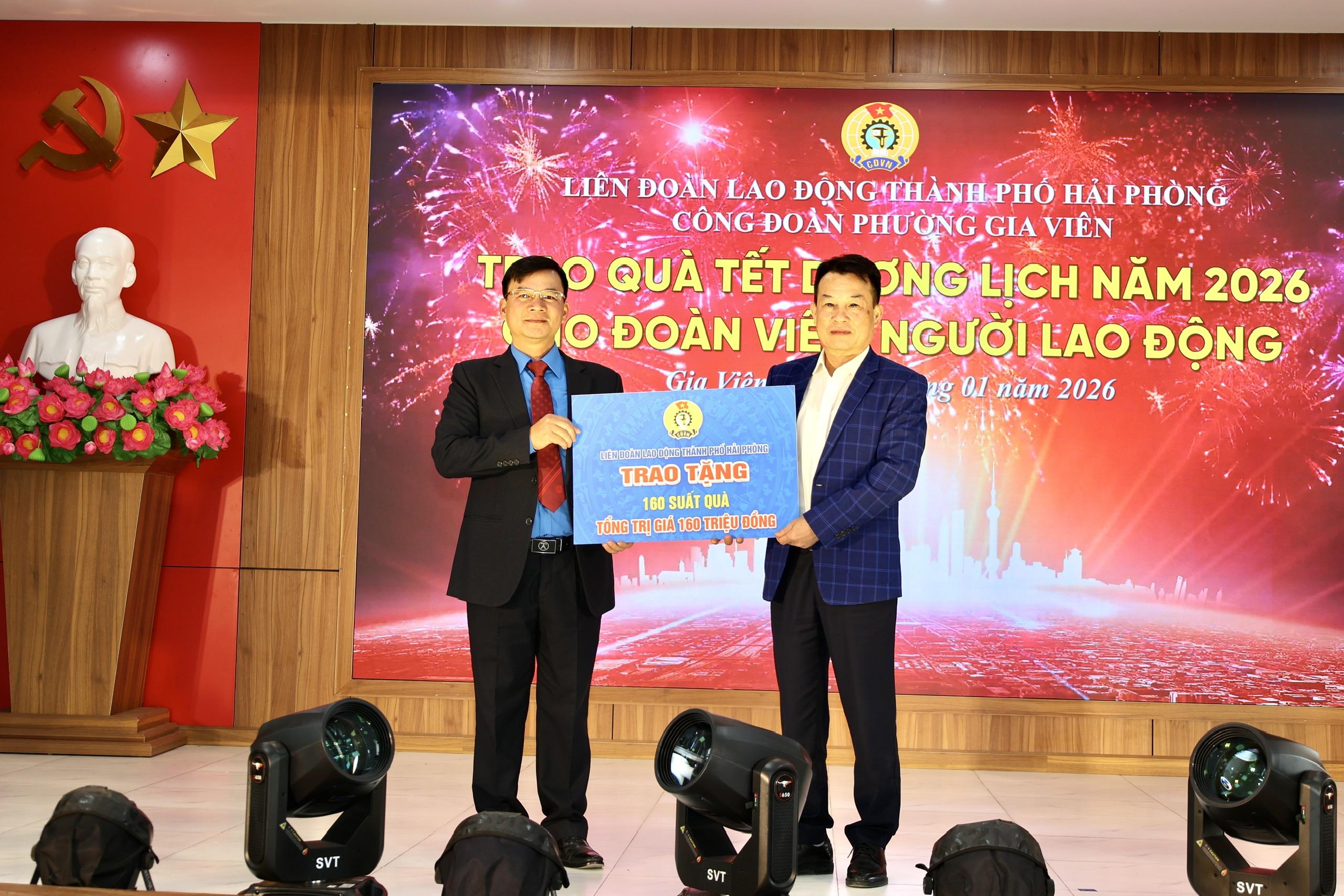 Nhân dịp này, Công đoàn phường Gia Viên tiếp nhận từ Công đoàn thành phố 160 suất quà Tết, mỗi suất trị giá 1 triệu đồng dành tặng đoàn viên, người lao động có hoàn cảnh khó khăn trên địa bàn phường.