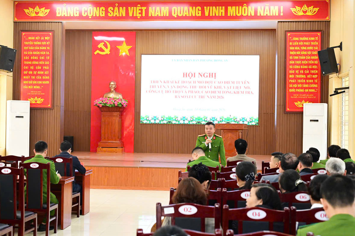 Tại Hội nghị, Công an phường Hồng An triển khai các kế hoạch về mở đợt cao điểm tuyên truyền, vận động thu hồi vũ khí, vật liệu nổ, công cụ hỗ trợ và pháo; cao điểm tổng kiểm tra, rà soát cư trú trên địa bàn phường nhằm tăng cường sự lãnh đạo của cấp ủy, chính quyền địa phương và nêu cao tinh thần, trách nhiệm của các cơ quan, đơn vị và nhân dân trong việc thực hiện Luật Quản lý vũ khí, vật liệu nổ, công cụ hỗ trợ và các văn bản hướng dẫn thi hành.