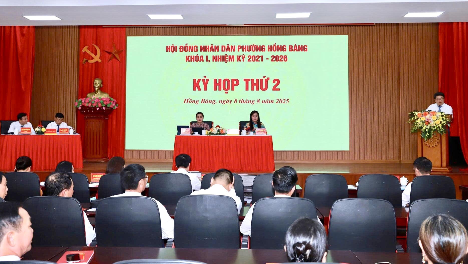 (Haiphong.gov.vn) - Sáng 8/8, HĐND phường Hồng Bàng tổ chức Kỳ họp thứ 2 HĐND phường khoá I, nhiệm kỳ 2021-2026 đánh giá tình hình thực hiện nhiệm vụ phát triển kinh tế - xã hội, quốc phòng - an ninh từ khi thực hiện mô hình chính quyền địa phương 2 cấp, thông qua phương hương hướng, nhiệm vụ những tháng cuối năm 2025.