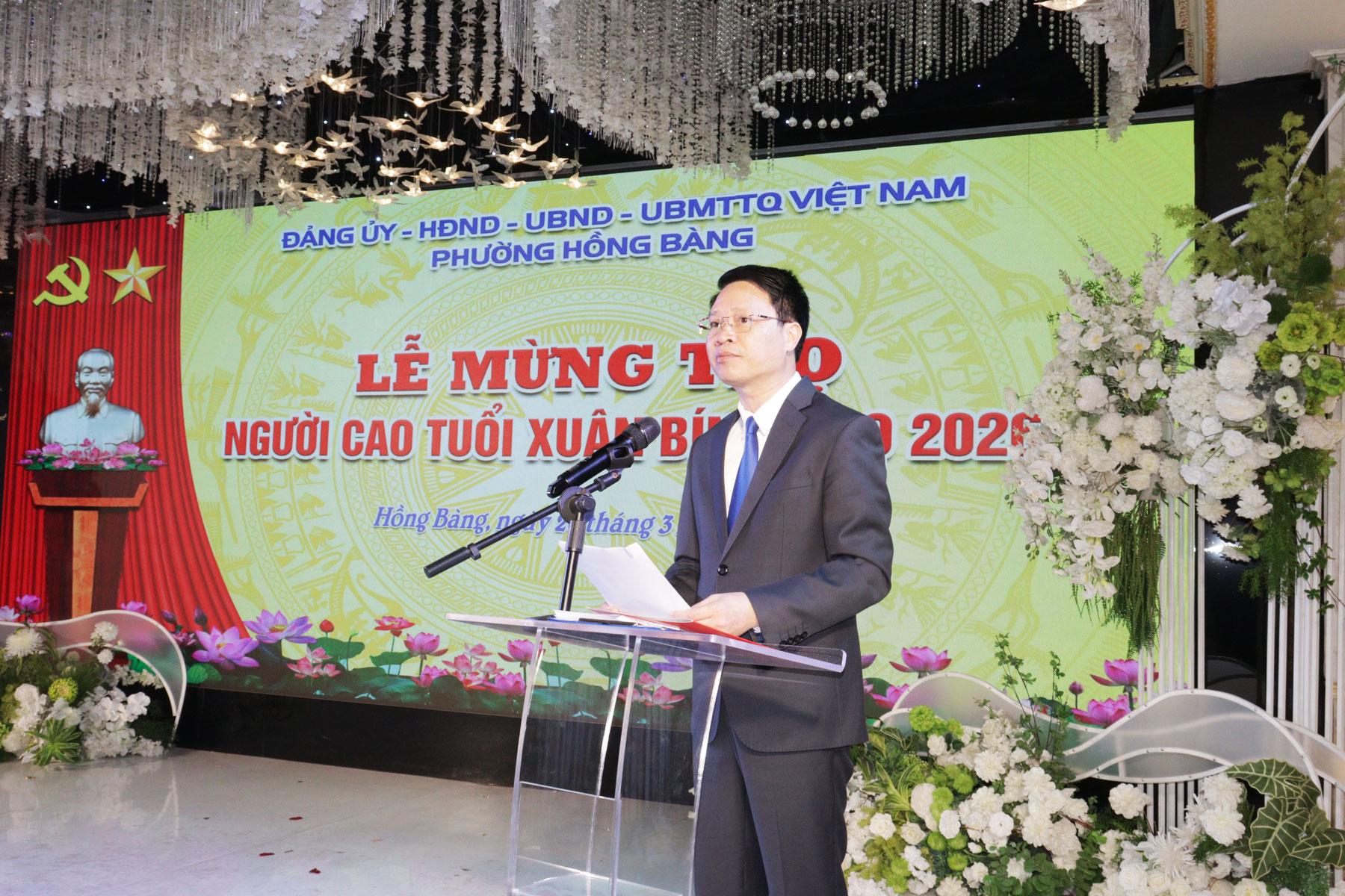 Thời gian qua, Đảng bộ, chính quyền và nhân dân phường Hồng Bàng luôn xác định, chăm lo đời sống vật chất và tinh thần cho nhân dân nói chung, cho người cao tuổi nói riêng không chỉ là trách nhiệm của các cấp, các ngành, mà còn là tình cảm, đạo lý, là nghĩa vụ thiêng liêng của cả cộng đồng. Để công tác này thực hiện tốt hơn nữa, đồng chí Bí thư Đảng ủy phường đề nghị các ban, ngành, đoàn thể cần thực hiện bằng những việc làm cụ thể, thiết thực, đảm bảo các chế độ chính sách cho người cao tuổi được thực hiện đầy đủ, kịp thời. Đối với các gia đình, con cháu cần làm tốt hơn nữa việc hiếu nghĩa, chăm sóc ông bà, cha mẹ để các cụ được “Sống vui, sống khỏe, sống có ích”. Đối với Hội Người cao tuổi phường, tiếp tục phát huy vai trò “Tuổi cao - Gương sáng”, tích cực tham gia các phong trào thi đua, đặc biệt là công tác xây dựng Đảng và chính quyền tại cơ sở.