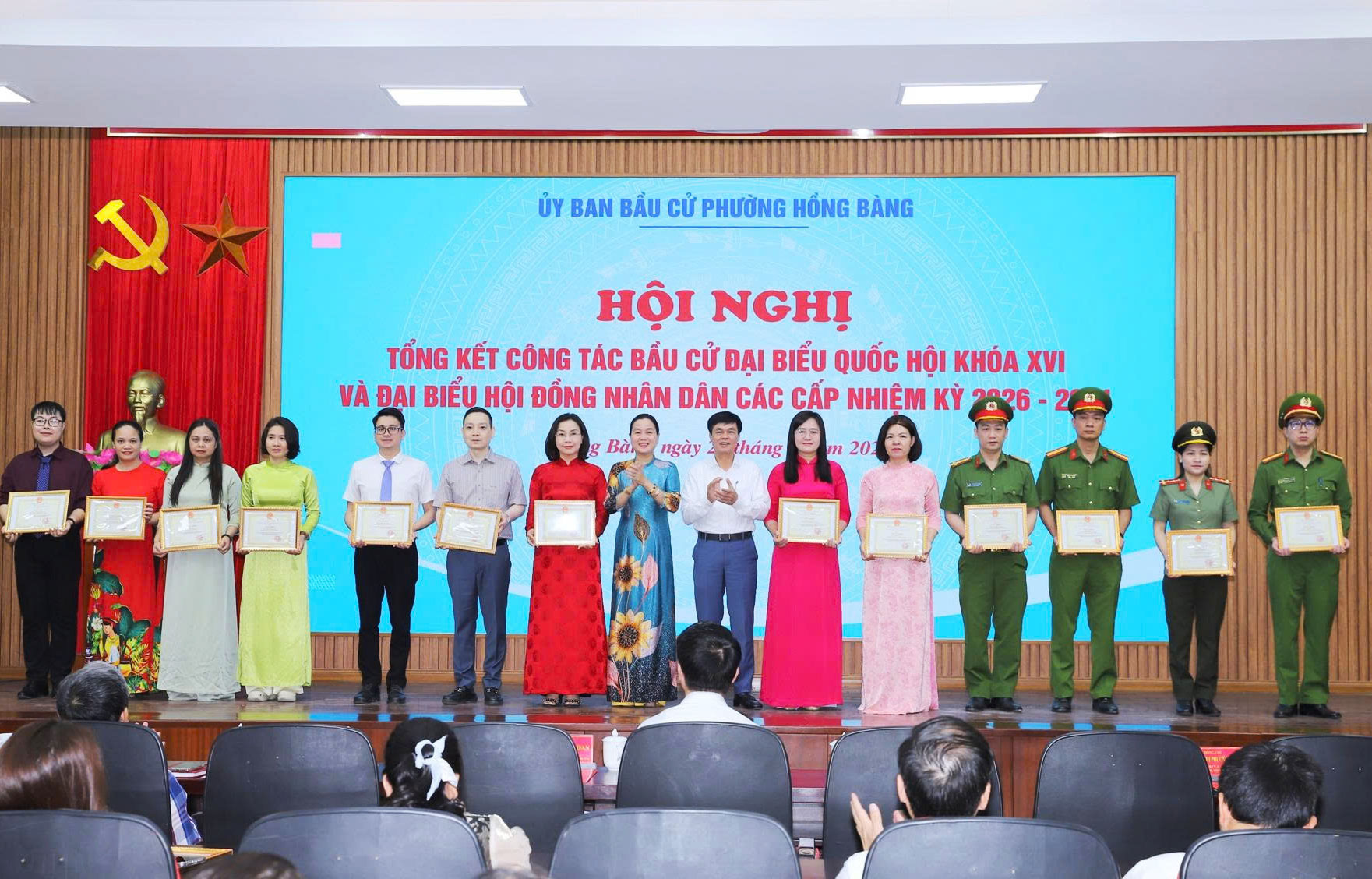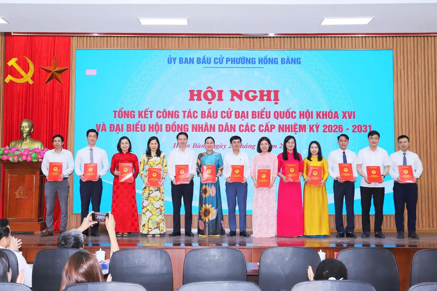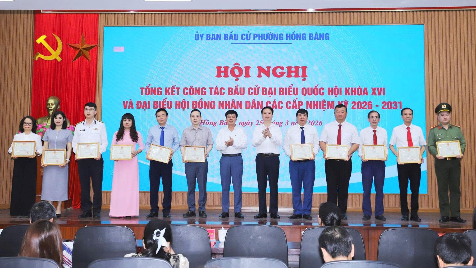 Tại Hội nghị, Chủ tịch UBND phường Hồng Bàng đã Quyết định khen thưởng 37 tập thể, 29 cá nhân có thành tích xuất sắc trong công tác bầu cử đại biểu Quốc hội khóa XVI và đại biểu HĐND các cấp, nhiệm kỳ 2026 - 2031. Đồng thời công bố Nghị quyết xác nhận tư cách đại biểu HĐND phường, nhiệm kỳ 2026 - 2031; trao Giấy chứng nhận đại biểu HĐND phường khóa II, nhiệm kỳ 2026 - 2031./.