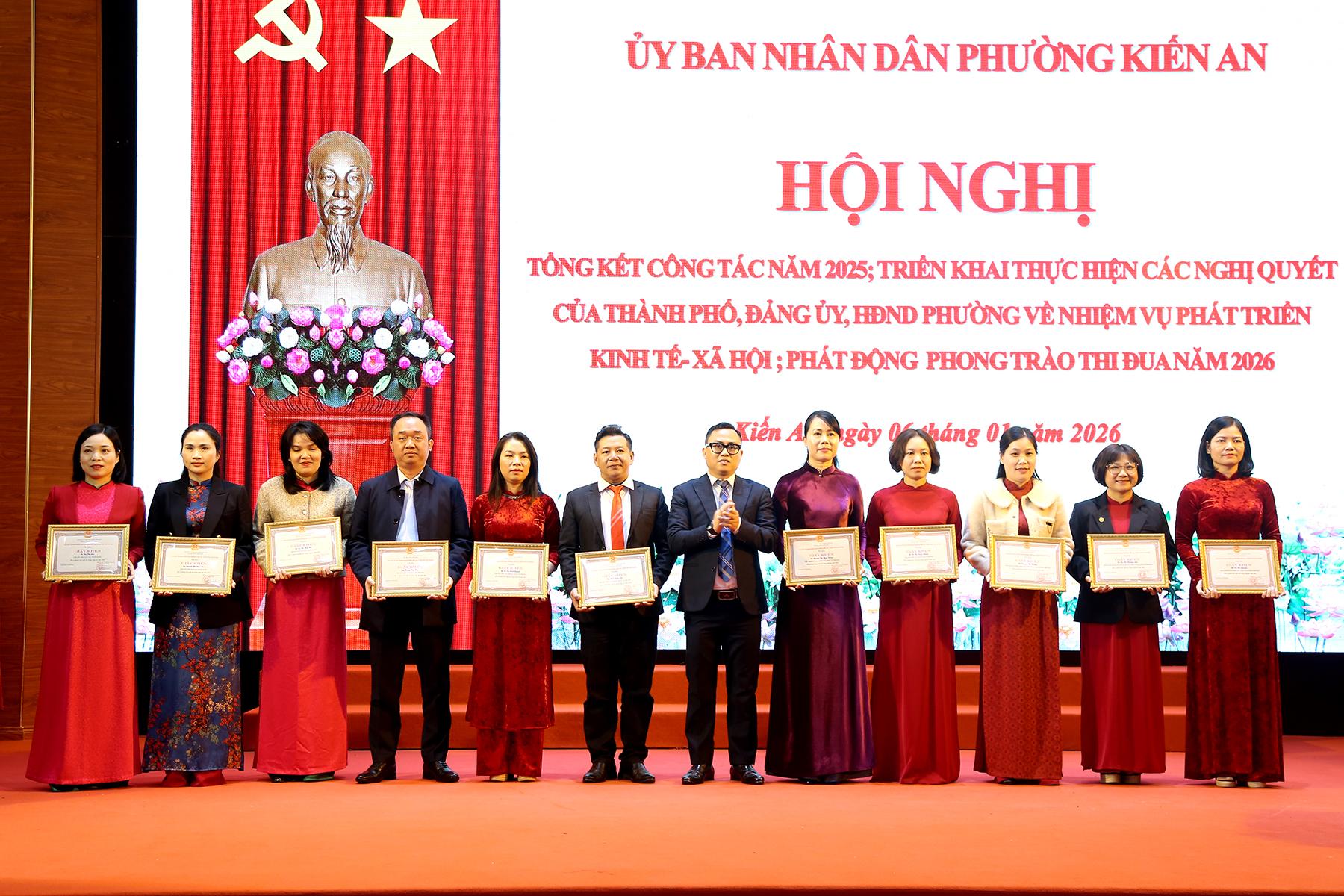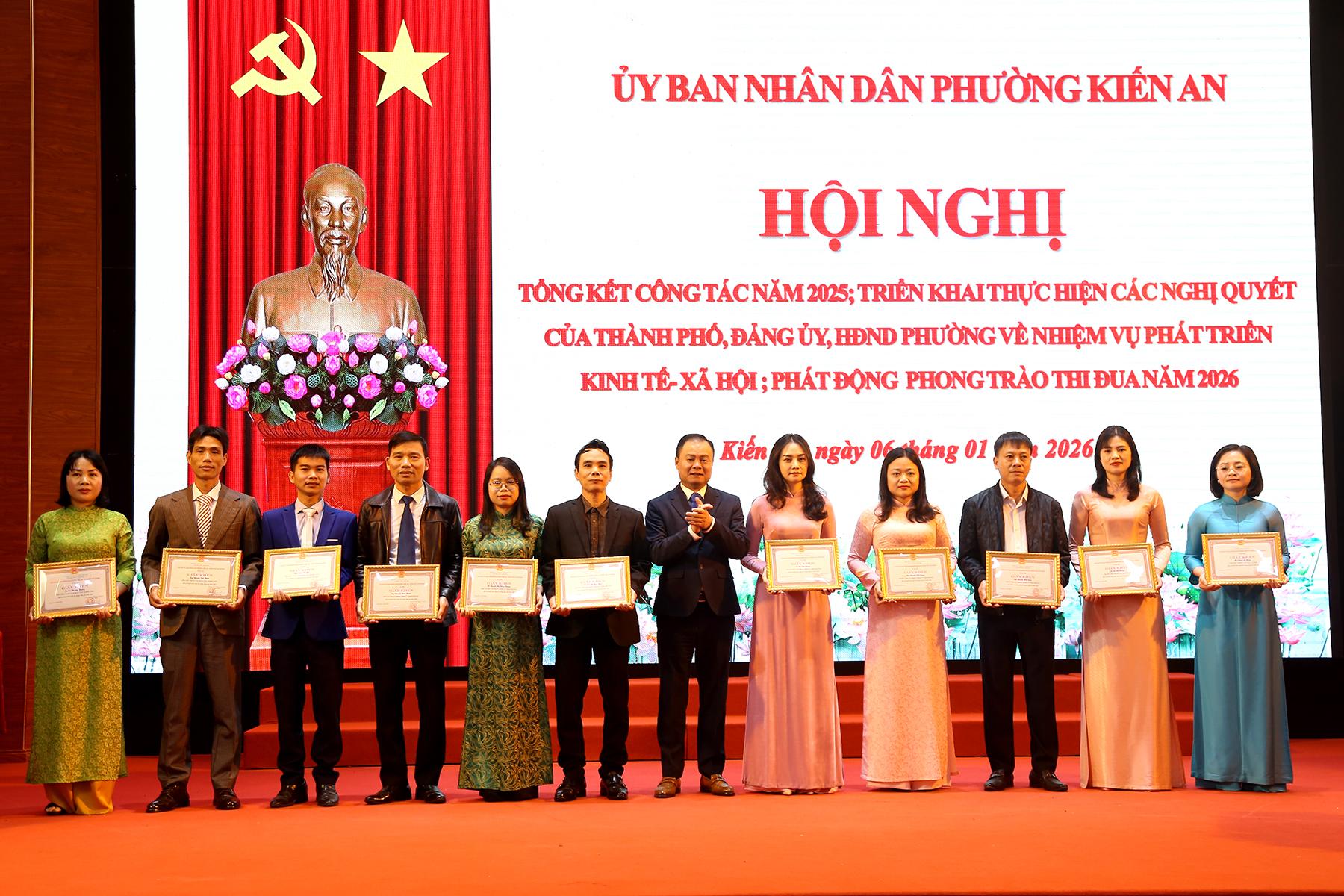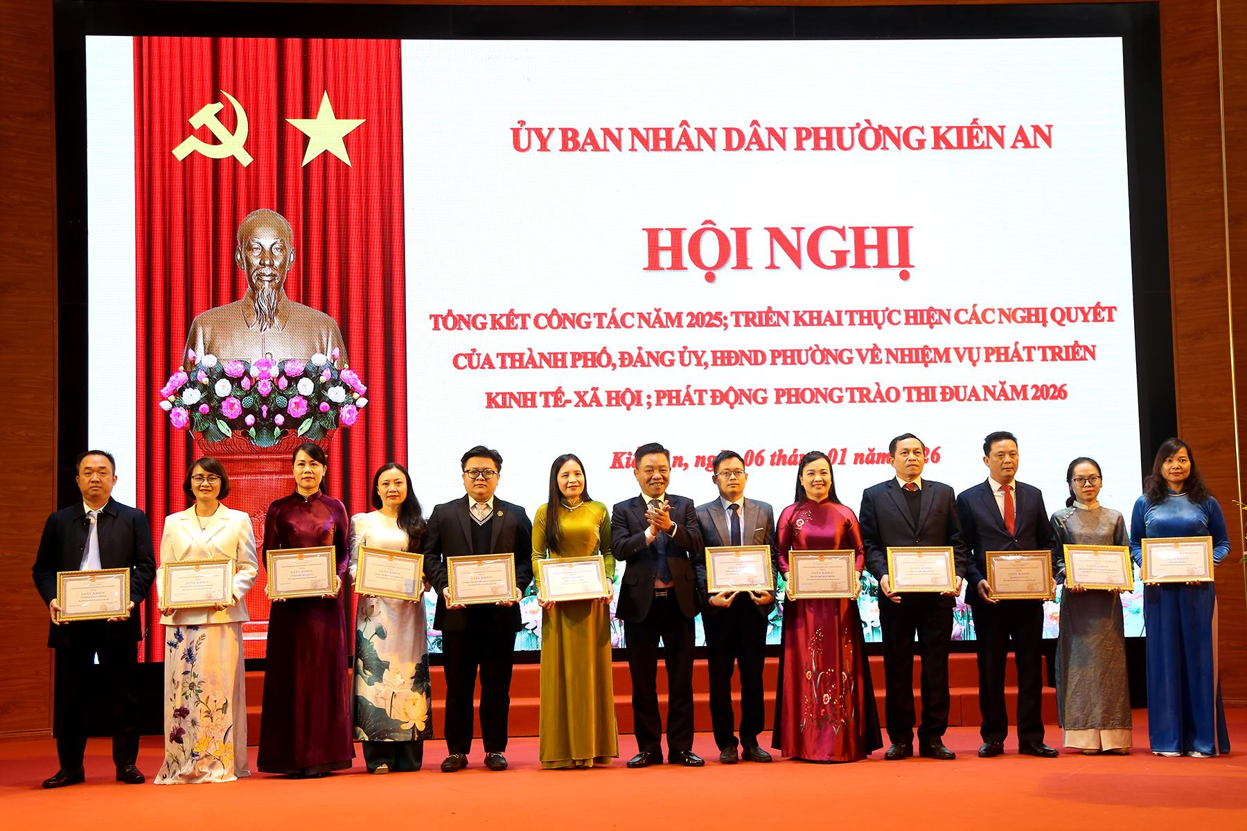 Cũng tại Hội nghị, Chủ tịch UBND phường Kiến An đã quyết định tặng Giấy khen cho 12 tập thể và 34 cá nhân có thành tích xuất sắc, tiêu biểu trong thực hiện nhiệm vụ công tác năm 2025./.