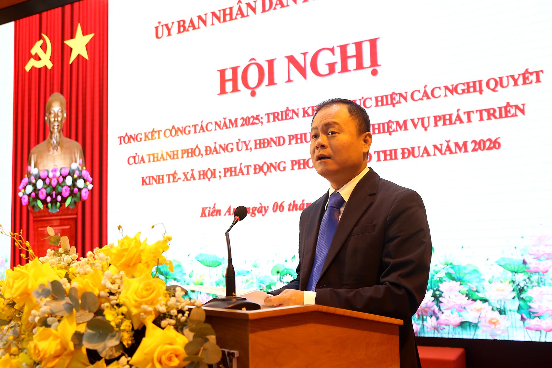 (Haiphong.gov.vn) – Chiều 6/1, UBND phường Kiến An tổ chức Hội nghị tổng kết công tác năm 2025; triển khai thực hiện các Nghị quyết của thành phố, Đảng ủy, HĐND phường về nhiệm vụ phát triển kinh tế – xã hội; phát động phong trào thi đua năm 2026 và triển khai các nhiệm vụ trọng tâm trước, trong và sau Tết Nguyên đán Bính Ngọ 2026.