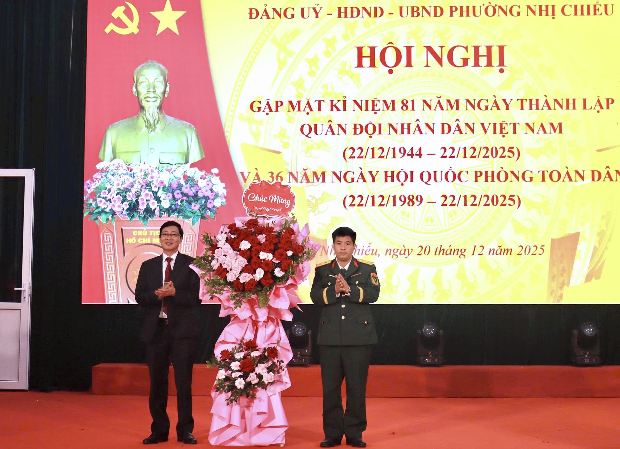 (Haiphong.gov.vn) - Sáng 20/12, Đảng ủy – HĐND – UBND phường Nhị Chiểu tổ chức hội nghị gặp mặt kỷ niệm 81 năm Ngày thành lập Quân đội nhân dân Việt Nam (22/12/1944 – 22/12/2025) và 36 năm Ngày hội Quốc phòng toàn dân.