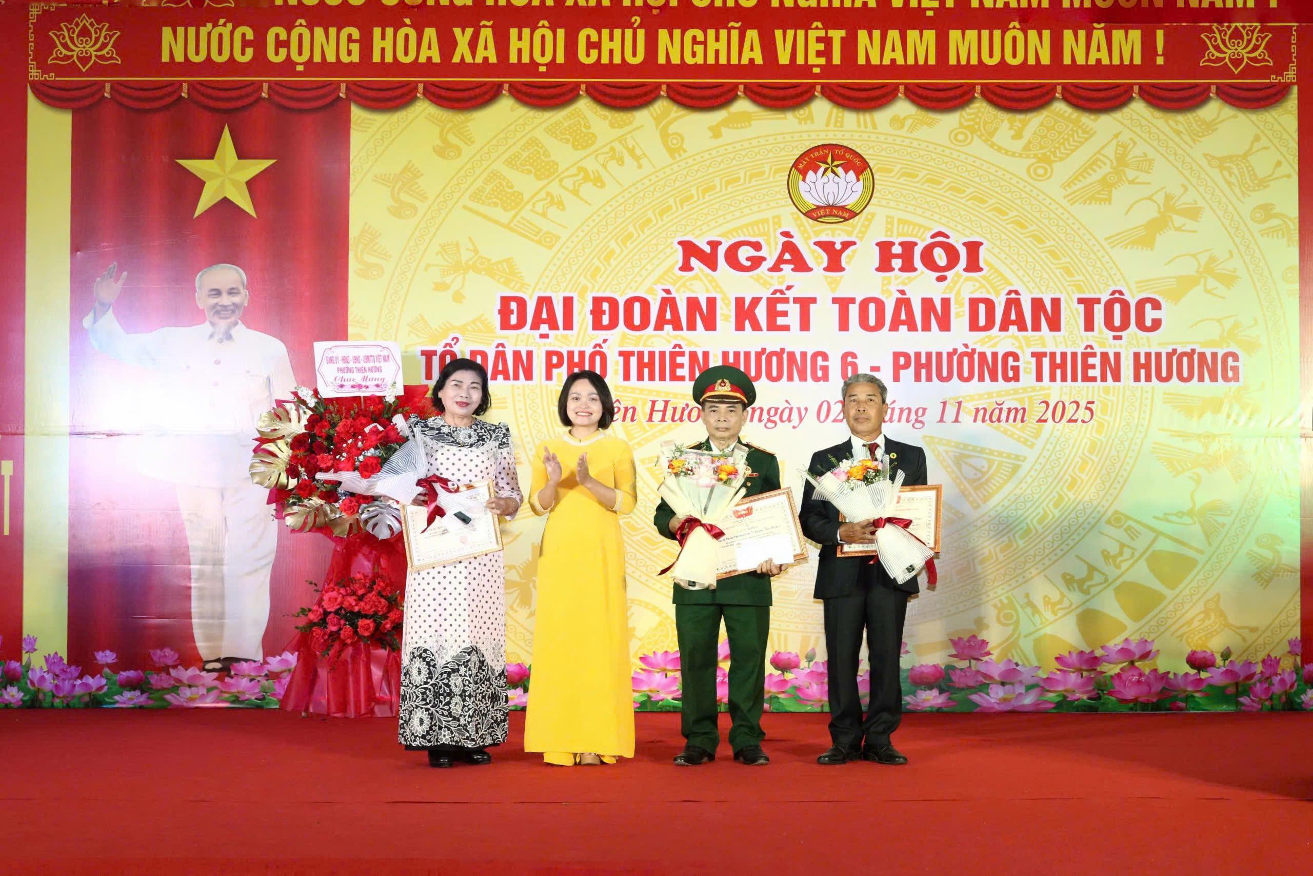 Ngày hội Đại đoàn kết toàn dân tộc tại Tổ dân phố Thiên Hương 6 diễn ra trong không khí vui tươi, phấn khởi, góp phần thắt chặt tình đoàn kết, lan tỏa tinh thần gắn bó, đồng lòng xây dựng phường Thiên Hương ngày càng phát triển, văn minh, hạnh phúc./.