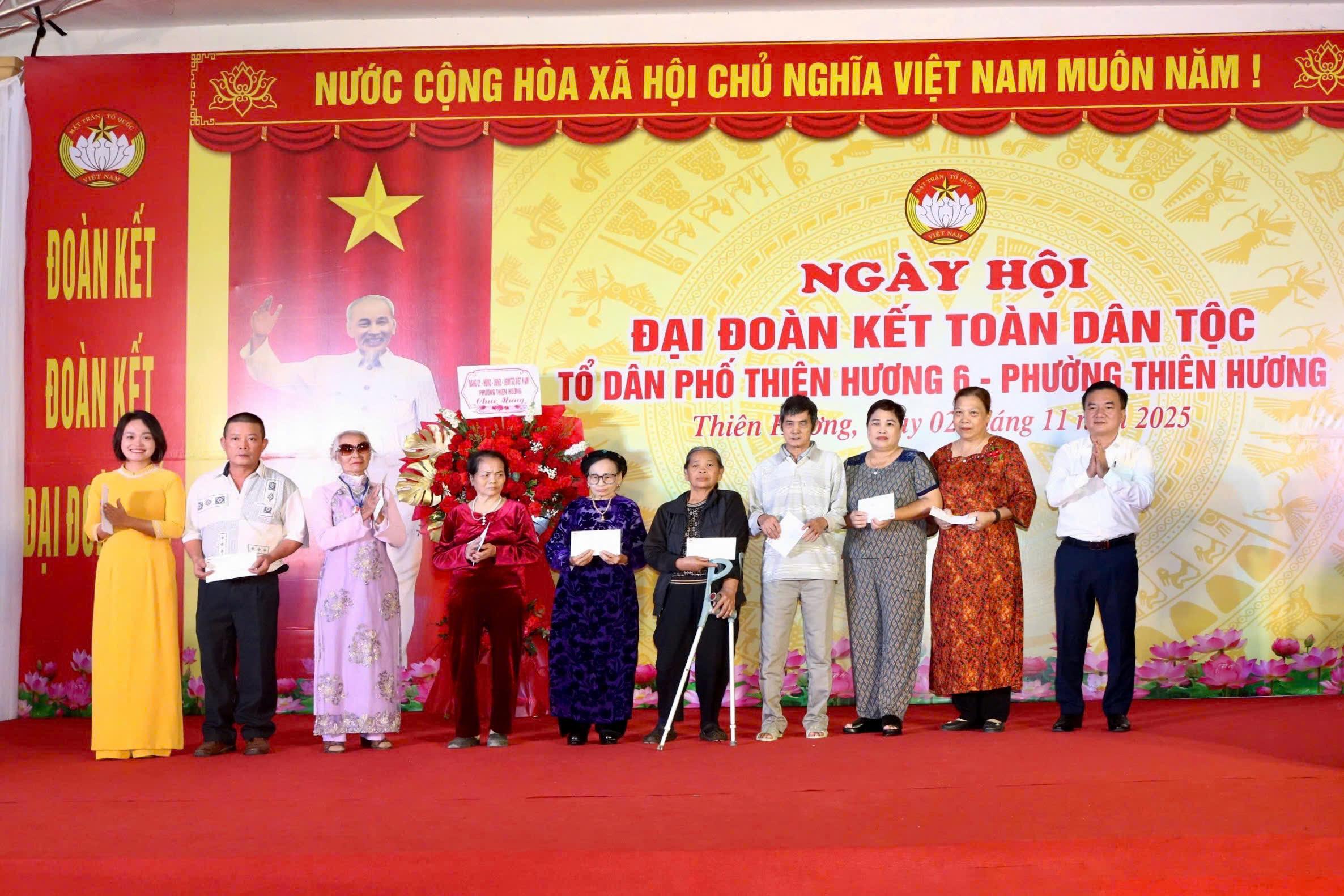 (Haiphong.gov.vn) – Ủy ban Mặt trận Tổ quốc Việt Nam phường Thiên Hương tổ chức Ngày hội Đại đoàn kết toàn dân tộc điểm tại Tổ dân phố Thiên Hương 6, nhân kỷ niệm 95 năm Ngày truyền thống Mặt trận Tổ quốc Việt Nam (18/11/1930 - 18/11/2025).