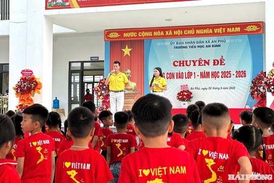Sáng 24/8, Trường Tiểu học An Bình, xã An Phú (Hải Phòng) tổ chức chuyên đề "Cùng con vào lớp 1", năm học 2025 - 2026 với nhiều hoạt động ý nghĩa, bổ ích với học sinh và các bậc phụ huynh.Trong không khí vui tươi, phấn khởi chuẩn bị vào năm học mới, 145 học sinh khối 1 năm học 2025 - 2026 Trường Tiểu học An Bình gửi lời cảm ơn, sự tri ân tới các bậc phụ huynh và chính quyền địa phương đã chuẩn bị chu đáo các điều kiện cho các con bước vào năm học mới.Những ngày đầu tiên đến trường và được tham gia những hoạt động sôi nổi cùng những người bạn mới, nhiều em nhỏ còn bỡ ngỡ, rụt rè nhưng được các cô giáo, cha mẹ đồng hành, động viên, vỗ về.Sau các hoạt động tập trung toàn khối 1 ở Trường Tiểu học An Bình, các bé được đưa về các lớp và trải nghiệm làm học sinh lớp 1 cùng thầy cô giáo.Các em chuẩn bị vào lớp 1 tham gia những tiết học thử nghiệm đầu tiên.Buổi trải nghiệm hôm nay cũng là cơ hội để các tân học sinh lớp 1 Trường Tiểu học An Bình làm quen với môi trường mới, bạn bè mới, trường lớp mới và các thầy cô mới của mình.Trong khi các con được trải nghiệm làm học sinh lớp 1, các phụ huynh được nghe chuyên gia chia sẻ những kỹ năng để sẵn sàng và luôn bình tĩnh, khéo léo, sẻ chia để đồng hành cùng con trên chặng đường mới.Một số phụ huynh có những câu hỏi rất thú vị, thực tiễn để chuyên gia giải đáp trước khi cùng con vào lớp 1 như "Làm sao để đồng hành cùng con, dạy học cho con mà không sứt mẻ tình cảm?".Nhiều ông bà, cha mẹ đứng ngoài dõi theo và thấu hiểu hơn về hành trình đầu tiên của con, cháu mình.