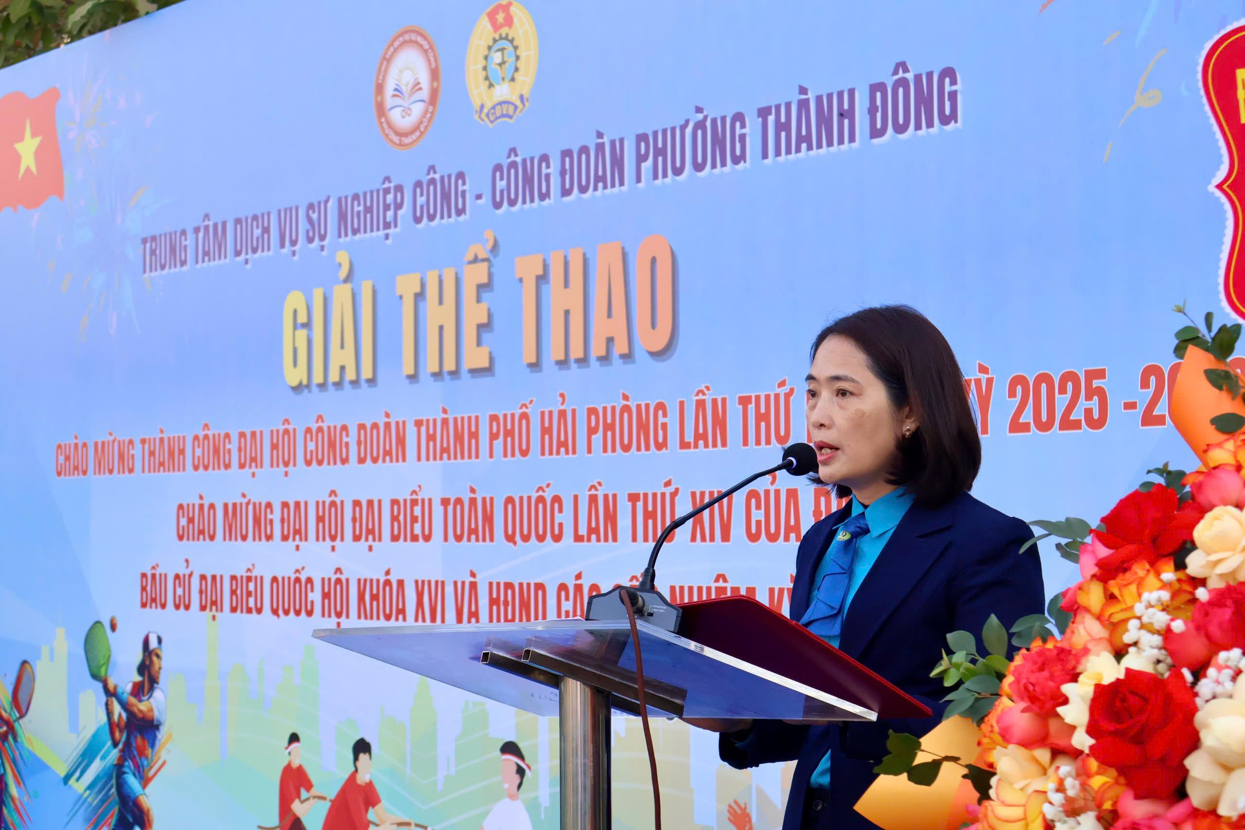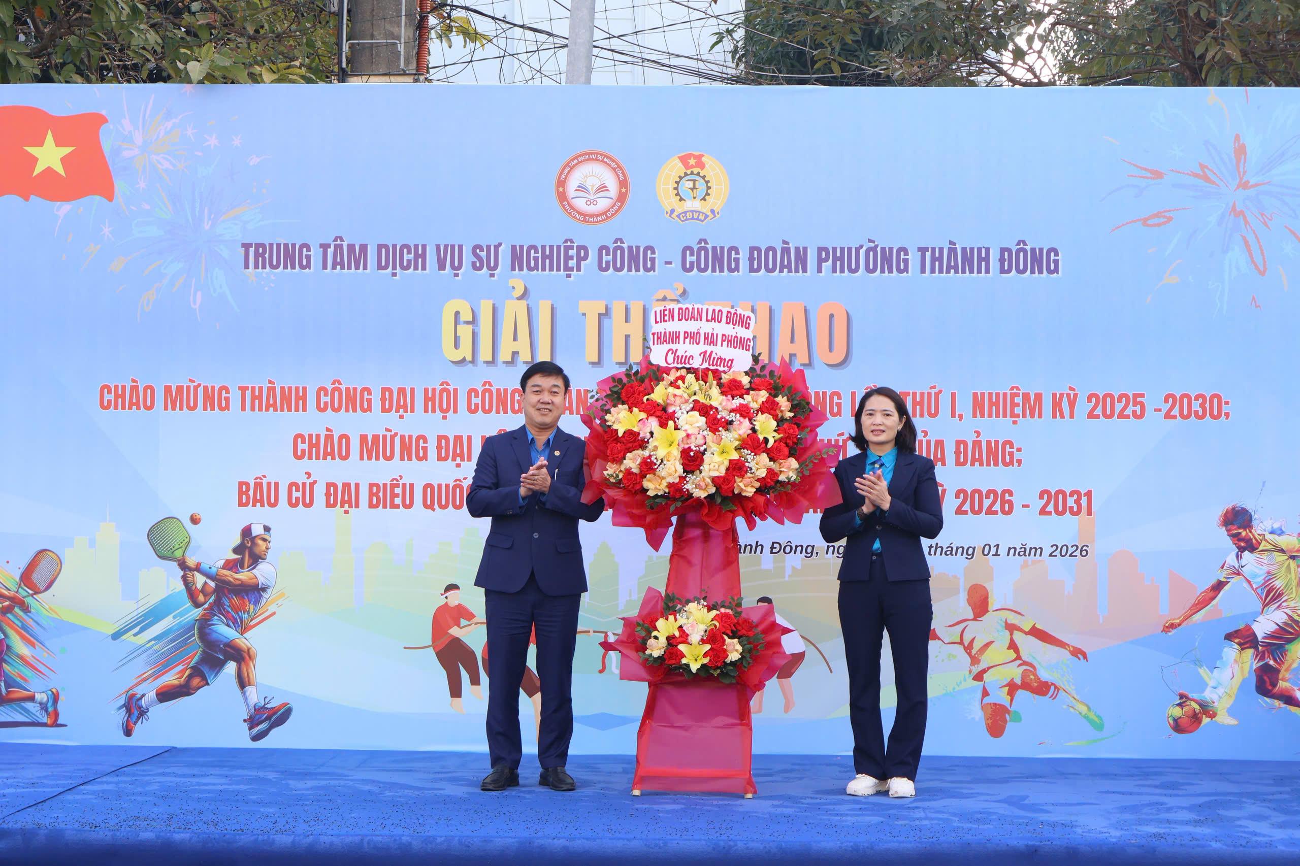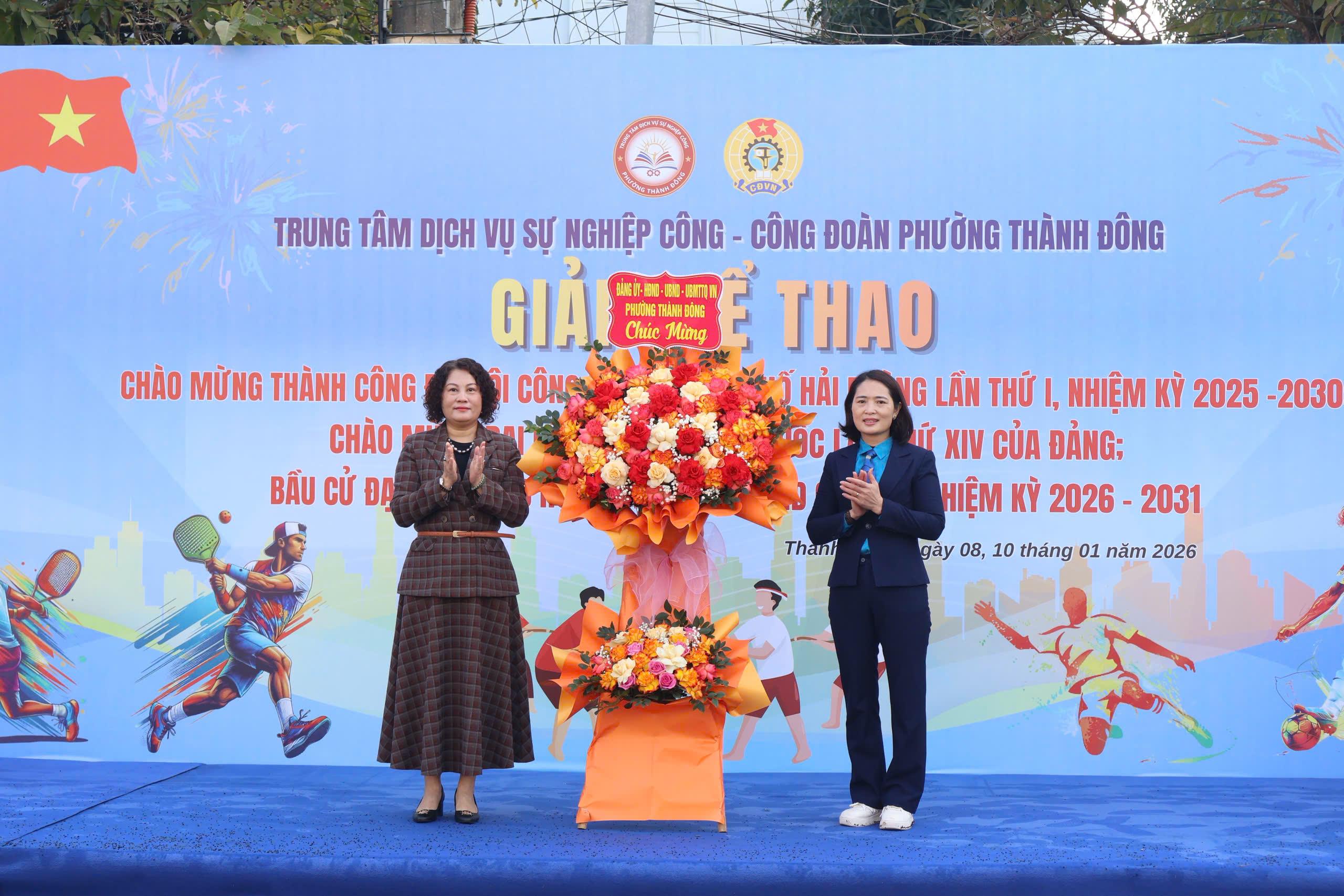 (Haiphong.gov.vn) - Sáng 10/01, phường Thành Đông tổ chức Giải thể thao trong công nhân, viên chức, lao động chào mừng Đại hội đại biểu toàn quốc lần thứ XIV của Đảng; chào mừng cuộc bầu cử đại biểu Quốc hội và HĐND các cấp nhiệm kỳ 2026–2030; đồng thời mừng thành công Đại hội Công đoàn thành phố lần thứ I.