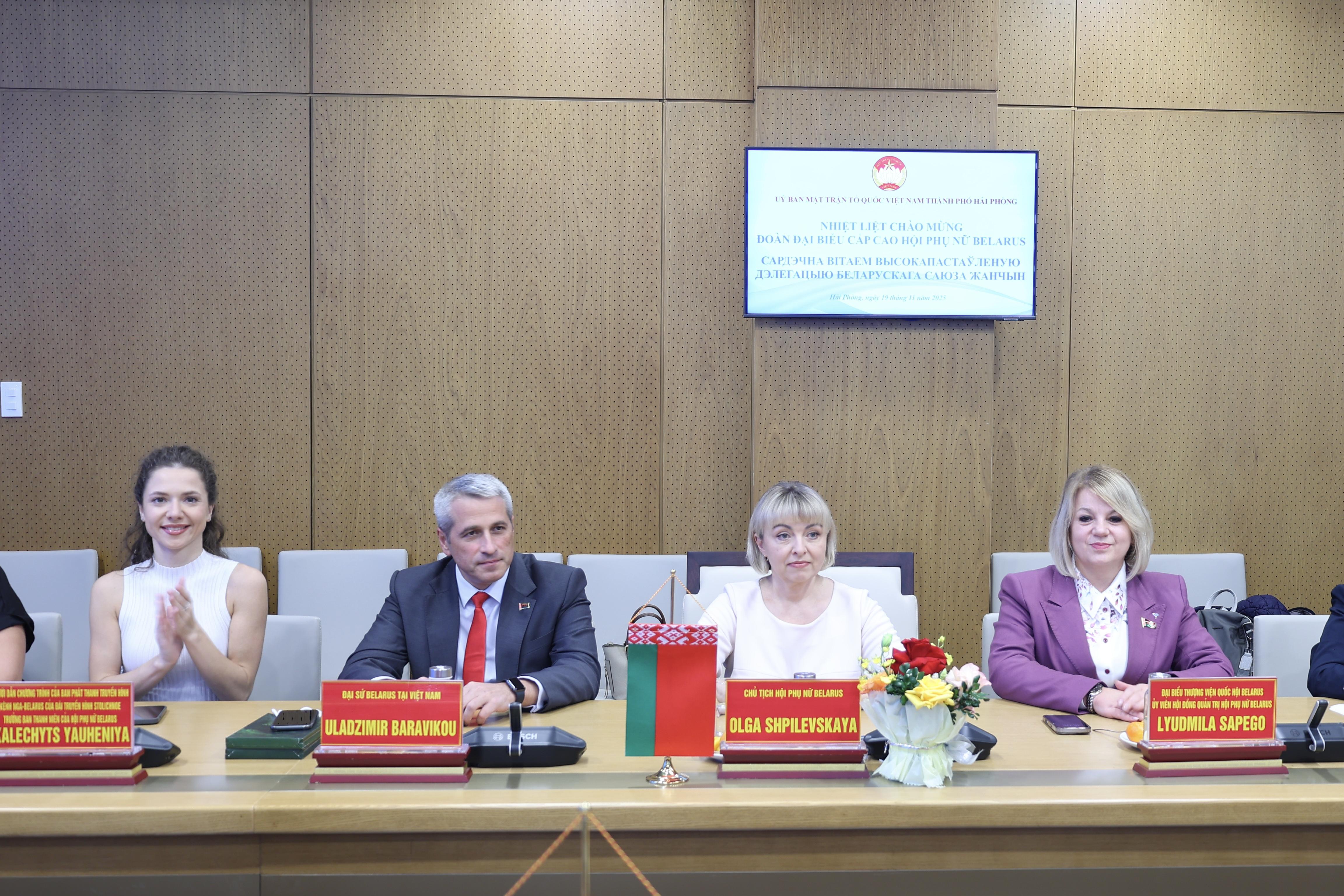 Bà Olga Aleksandrovna Shpilevskaya, Chủ tịch Hội Phụ nữ Belarus, bày tỏ vinh dự khi được gặp gỡ, làm việc với Ủy ban MTTQ Việt Nam thành phố, Hội Liên hiệp phụ nữ thành phố Hải Phòng. Là quốc gia có tới khoảng 1/3 số nghị sĩ quốc hội là nữ, Chủ tịch Hội Phụ nữ Belarus cho biết sự ủng hộ của lãnh đạo cấp cao trong công tác nhân sự là rất quan trọng. Chủ tịch Hội Phụ nữ Belarus bày tỏ tin tưởng hai bên sẽ tích cực thúc đẩy quan hệ song phương trên các lĩnh vực, từ kinh tế, văn hóa đến xã hội.