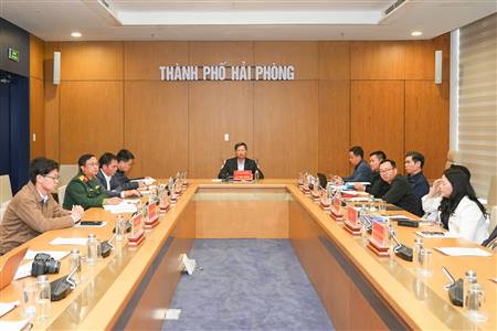 Tại điểm cầu thành phố Hải Phòng, Phó Chủ tịch Thường trực UBND thành phố Lê Anh Quân, cùng đại diện lãnh đạo các Sở, ban, ngành liên quan tham dự Hội nghị.