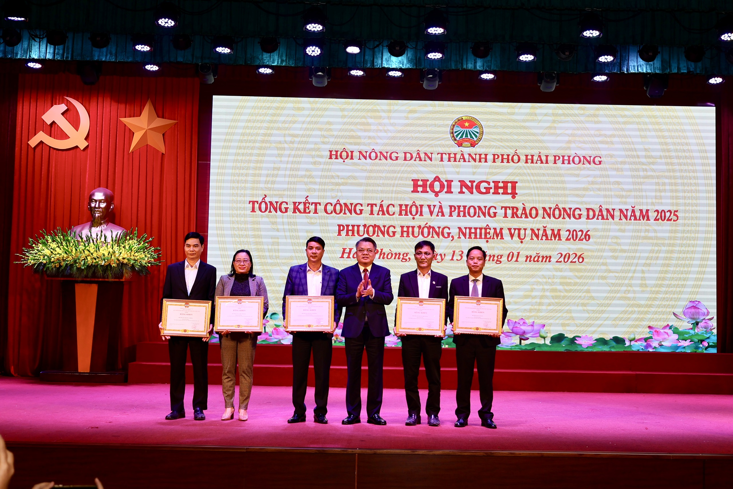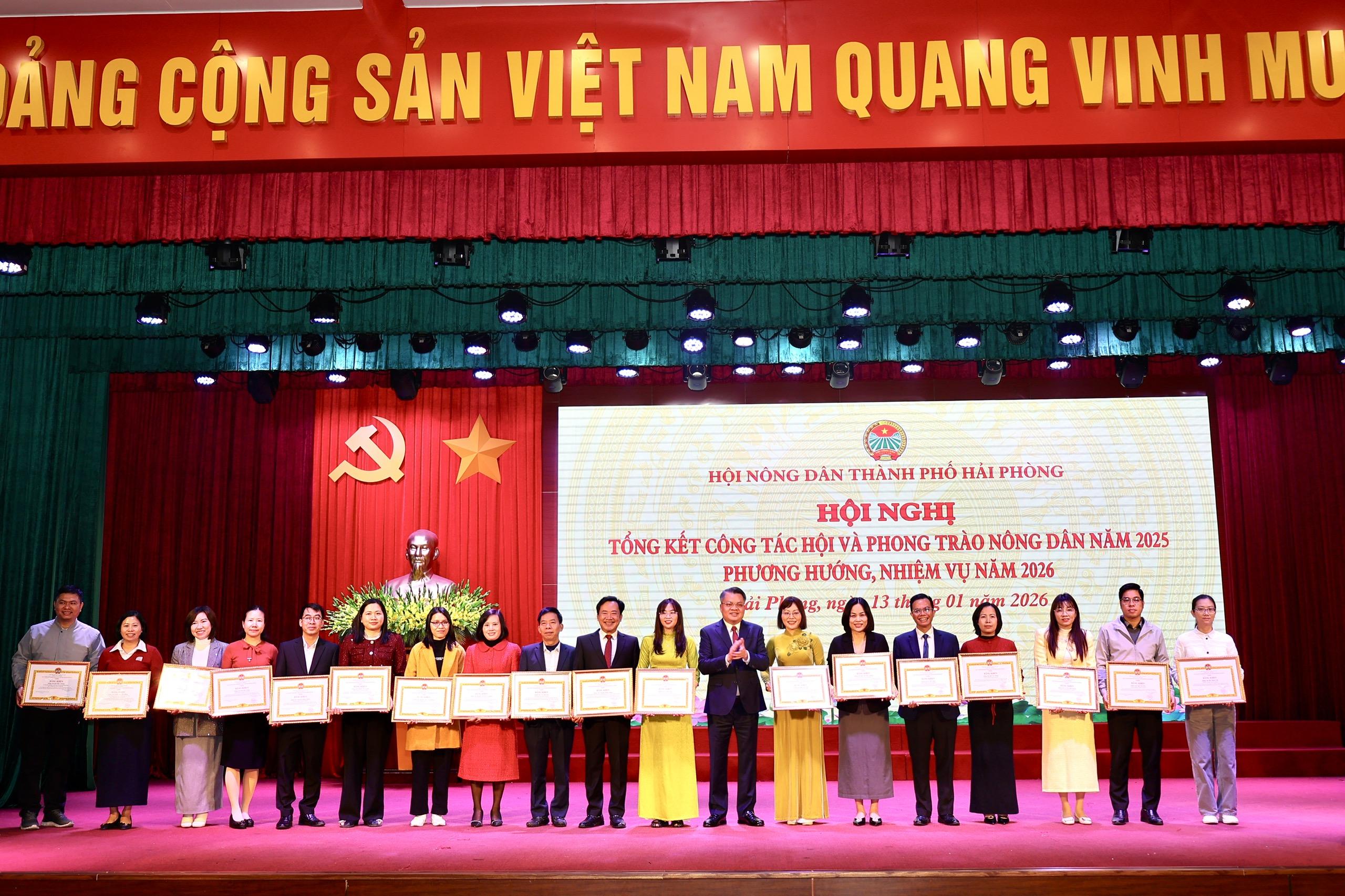 Nhân dịp này, Ban Chấp hành Trung ương HND Việt Nam tặng bằng khen cho 5 tập thể có thành tích xuất sắc trong công tác Hội và phong trào nông dân năm 2024 - 2025. Ban Chấp hành HND thành phố tặng bằng khen cho 15 tập thể, 18 cá nhân có thành tích xuất sắc trong việc tham gia và tổ chức các hoạt động chào mừng Đại hội đại biểu HND thành phố Hải Phòng lần thứ Nhất, nhiệm kỳ 2025-2030; tặng bằng khen cho 28 tập thể, 19 cá nhân có thành tích xuất sắc trong công tác Hội và phong trào nông dân năm 2025./.
