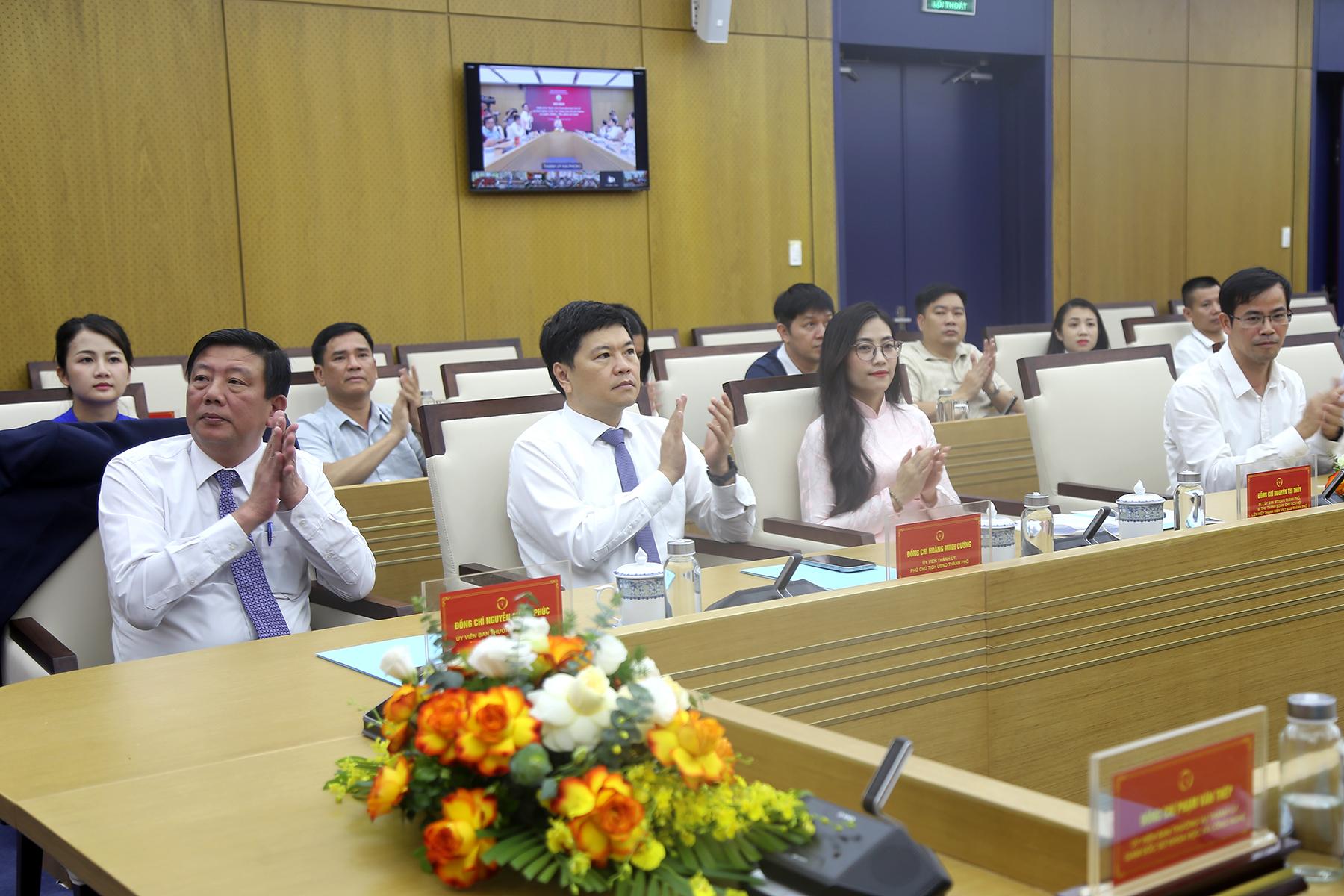 Dự Hội nghị có các đồng chí: Nguyễn Quang Phúc – Ủy viên Ban Thường vụ Thành ủy, Trưởng Ban Tuyên giáo và Dân vận Thành ủy, Tổ trưởng Tổ công tác triển khai phong trào Bình dân học vụ số trên địa bàn thành phố; Phạm Văn Thép – Ủy viên Ban Thường vụ Thành ủy, Giám đốc Sở KH&CN thành phố; Hoàng Minh Cường – Phó Chủ tịch UBND thành phố, cùng đại diện lãnh đạo các Sở, ban, ngành và đơn vị liên quan.