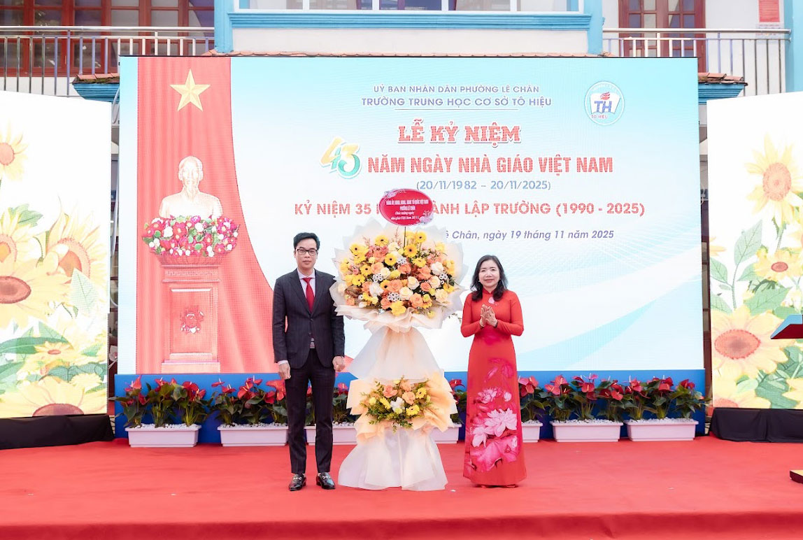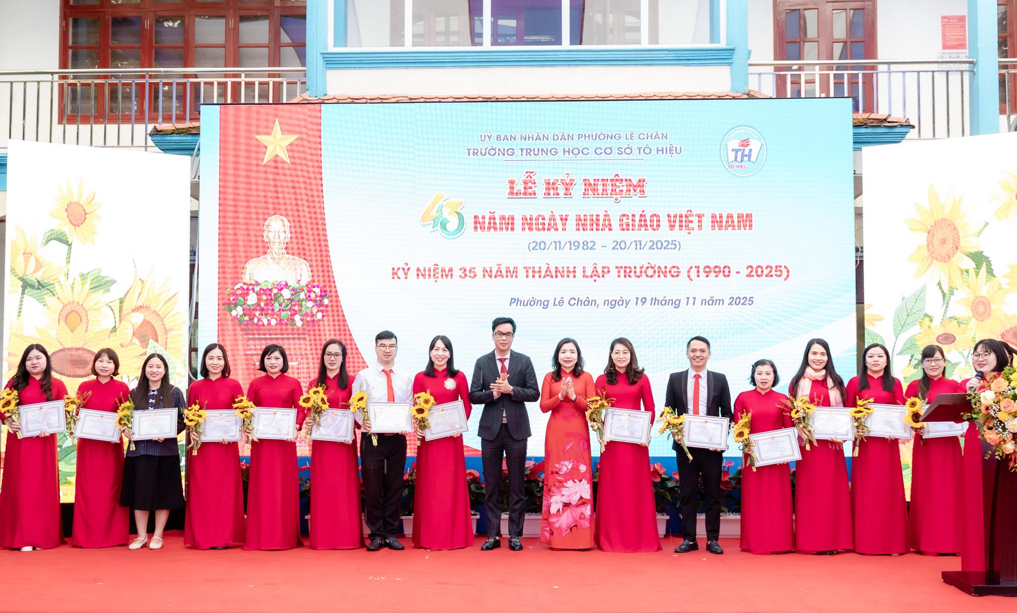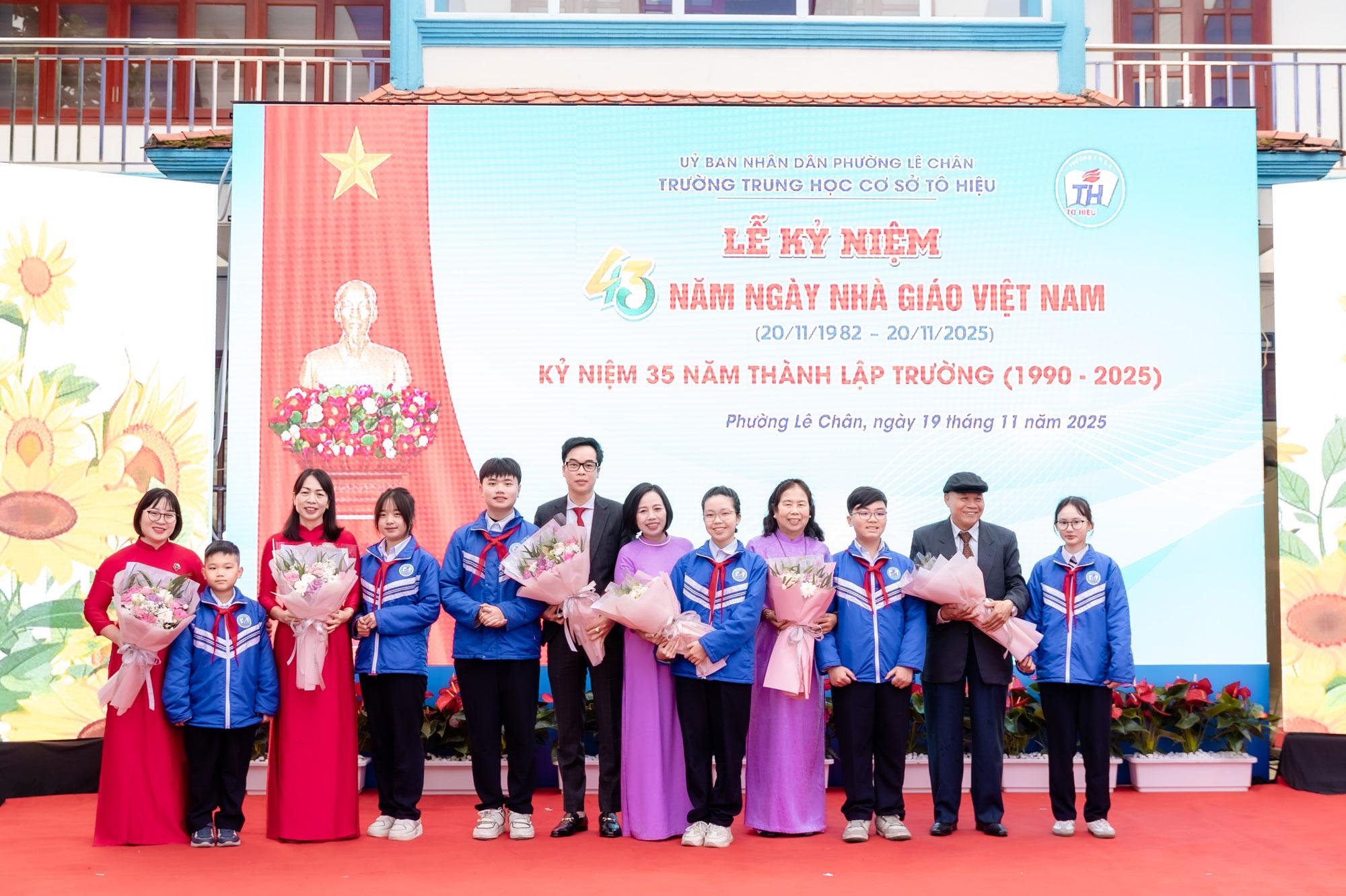 (Haiphong.gov.vn) - Ngày 19/11, Trường THCS Tô Hiệu (phường Lê Chân) tổ chức kỷ niệm 43 năm Ngày Nhà giáo Việt Nam (20/11/1982 - 20/11/2025) và 35 năm Ngày thành lập trường (1990 - 2025). Tới dự có đồng chí Nguyễn Thị Minh Ngọc, Phó Bí thư Thường trực Đảng ủy phường.