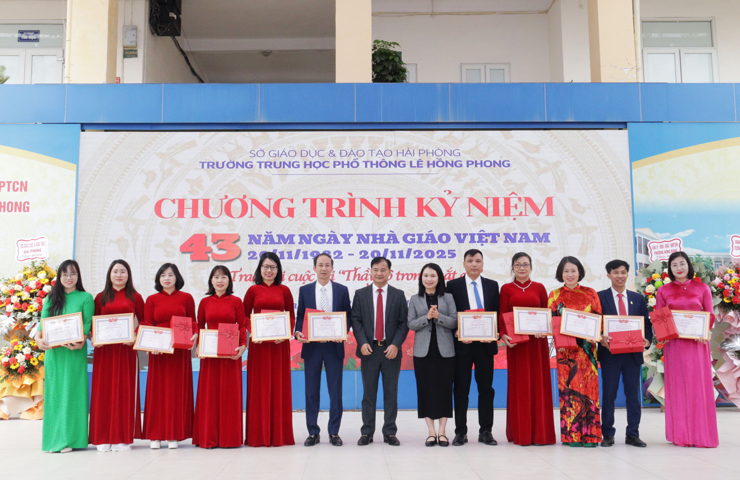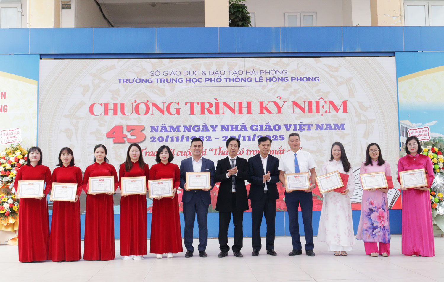 Nhân dịp này, Bộ Giáo dục và Đào tạo tặng Bằng khen cho tập thể Trường THPT Lê Hồng Phong và 3 cá nhân; nhiều cá nhân được nhận Giấy khen của Sở Giáo dục và Đào tạo, phường Hồng Bàng. Trường cũng biểu dương, khen thưởng các học sinh có thành tích trong tham gia các cuộc thi do thành phố, trường tổ chức./.
