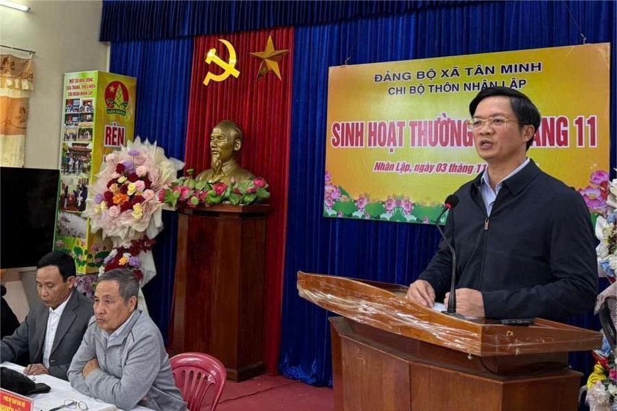 Chiều 3/11, đồng chí Phạm Văn Lập, Phó bí thư Thành ủy, Chủ tịch Ủy ban MTTQ Việt Nam thành phố dự sinh hoạt chi bộ thường kỳ tháng 11 tại Chi bộ thôn Nhân Lập thuộc Đảng bộ xã Tân Minh.