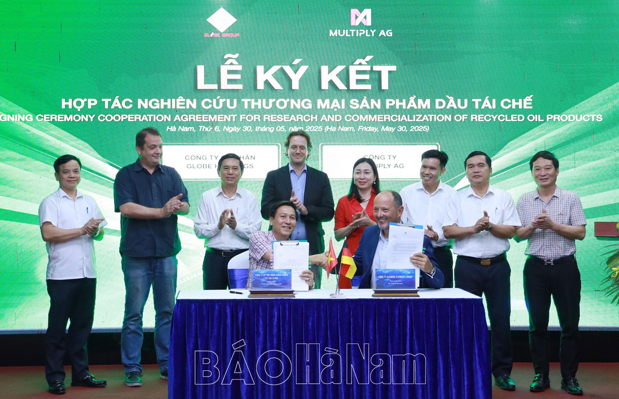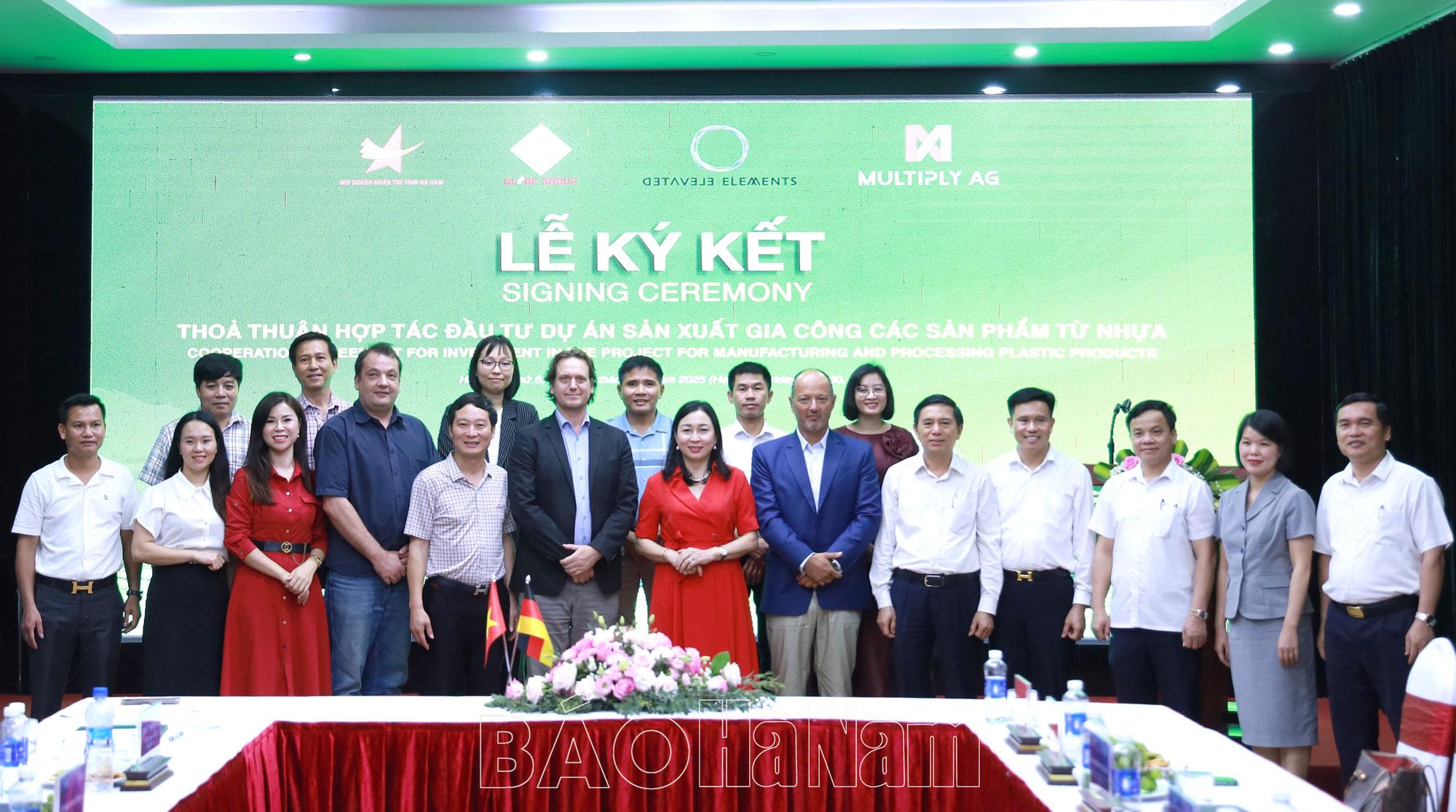 Chiều 30/5, Hội Doanh nhân trẻ (DNT) tỉnh phối hợp với Công ty cổ phần Tập đoàn Globe Holdings (thành phố Phủ Lý) tổ chức chương trình xúc tiến thương mại quốc tế và ký kết thỏa thuận hợp tác liên doanh đầu tư dự án sản xuất gia công các sản phẩm từ nhựa giữa Công ty cổ phần Tập đoàn Globe Holdings và 2 tập đoàn kinh tế lớn của Đức là Tập đoàn Elevated Elements Group và Tập đoàn Multiply AG.