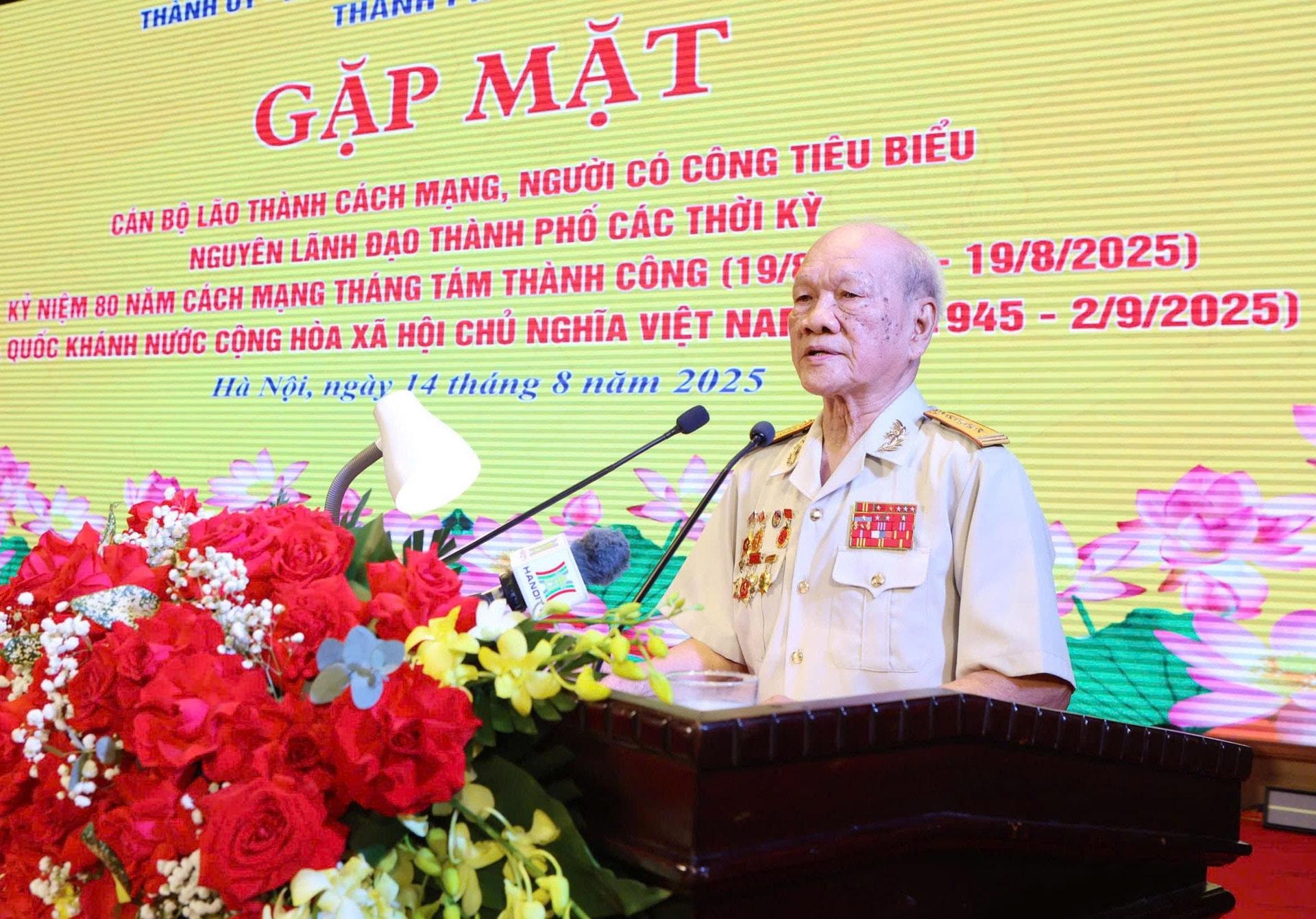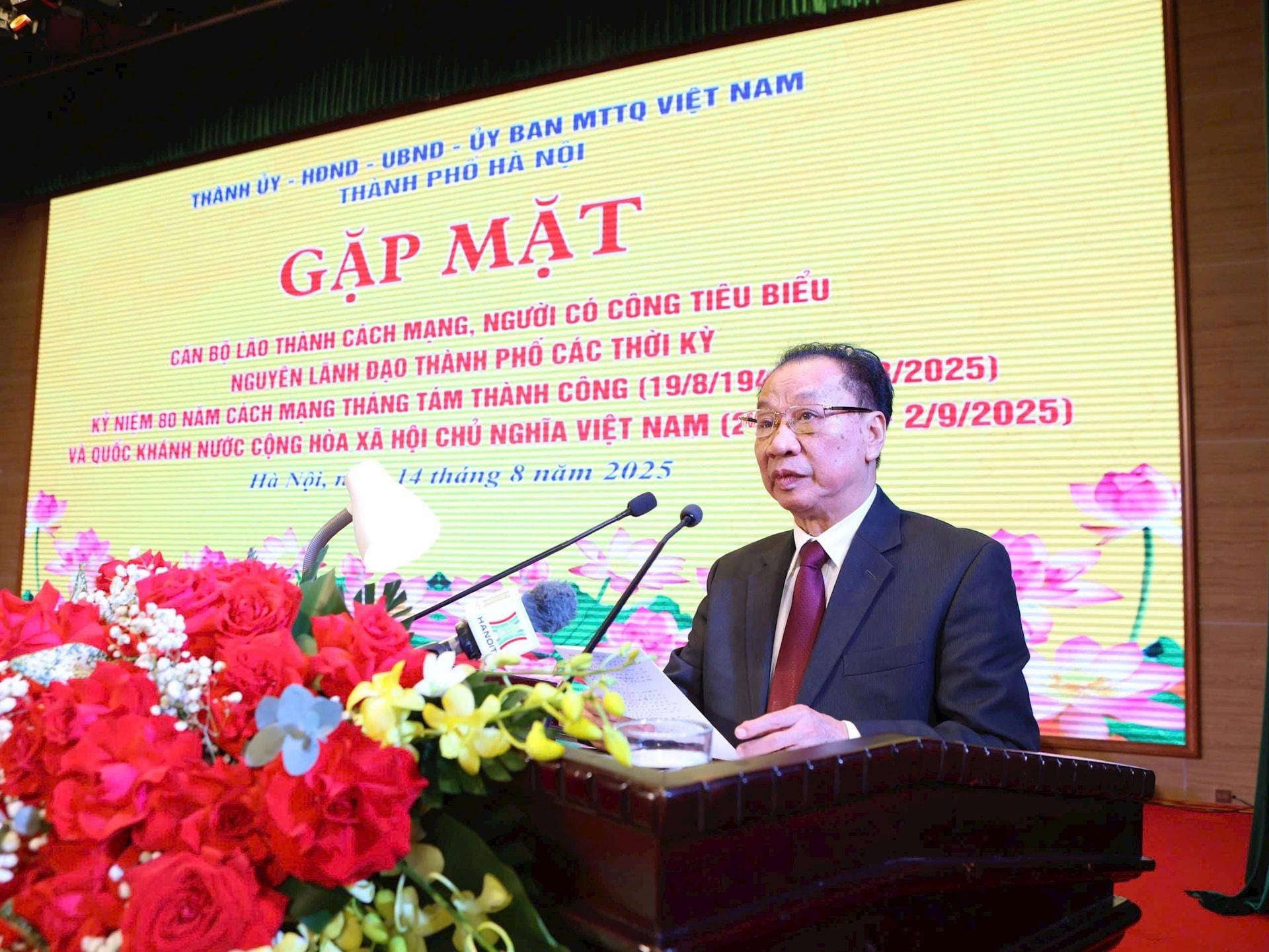 Ngày 14-8, tại trụ sở Bộ Tư lệnh Thủ đô (số 8 Phạm Hùng, phường Yên Hòa, Hà Nội), Thành ủy, HĐND, UBND, Ủy ban MTTQ Việt Nam thành phố Hà Nội trang trọng tổ chức gặp mặt đại biểu cán bộ lão thành cách mạng, người có công tiêu biểu, nguyên lãnh đạo thành phố các thời kỳ nhân kỷ niệm 80 năm Cách mạng Tháng Tám thành công (19/8/1945-19/8/2025) và Quốc khánh nước Cộng hòa xã hội chủ nghĩa Việt Nam (2/9/1945-2/9/2025).