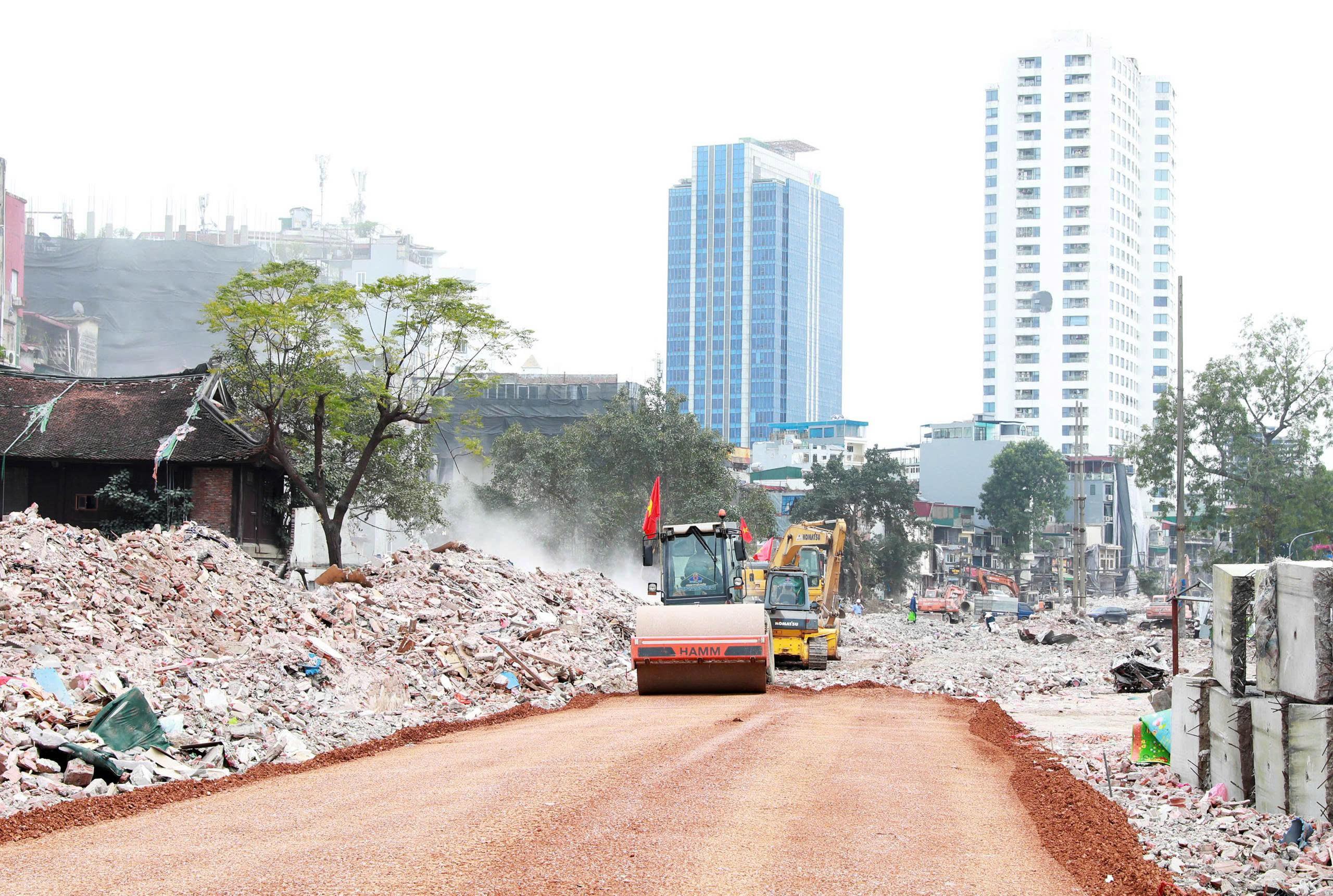 Thi công xây dựng tuyến đường Vành đai 1 đoạn Hoàng Cầu - Voi Phục