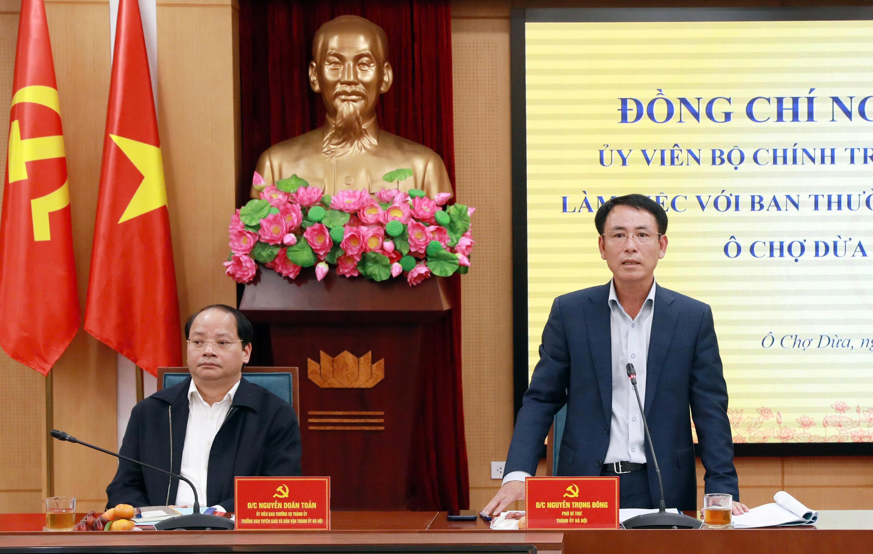 Bí thư Thành ủy Nguyễn Duy Ngọc làm việc với Ban Thường vụ Đảng ủy 3 phường: Ô Chợ Dừa, Láng, Giảng Võ