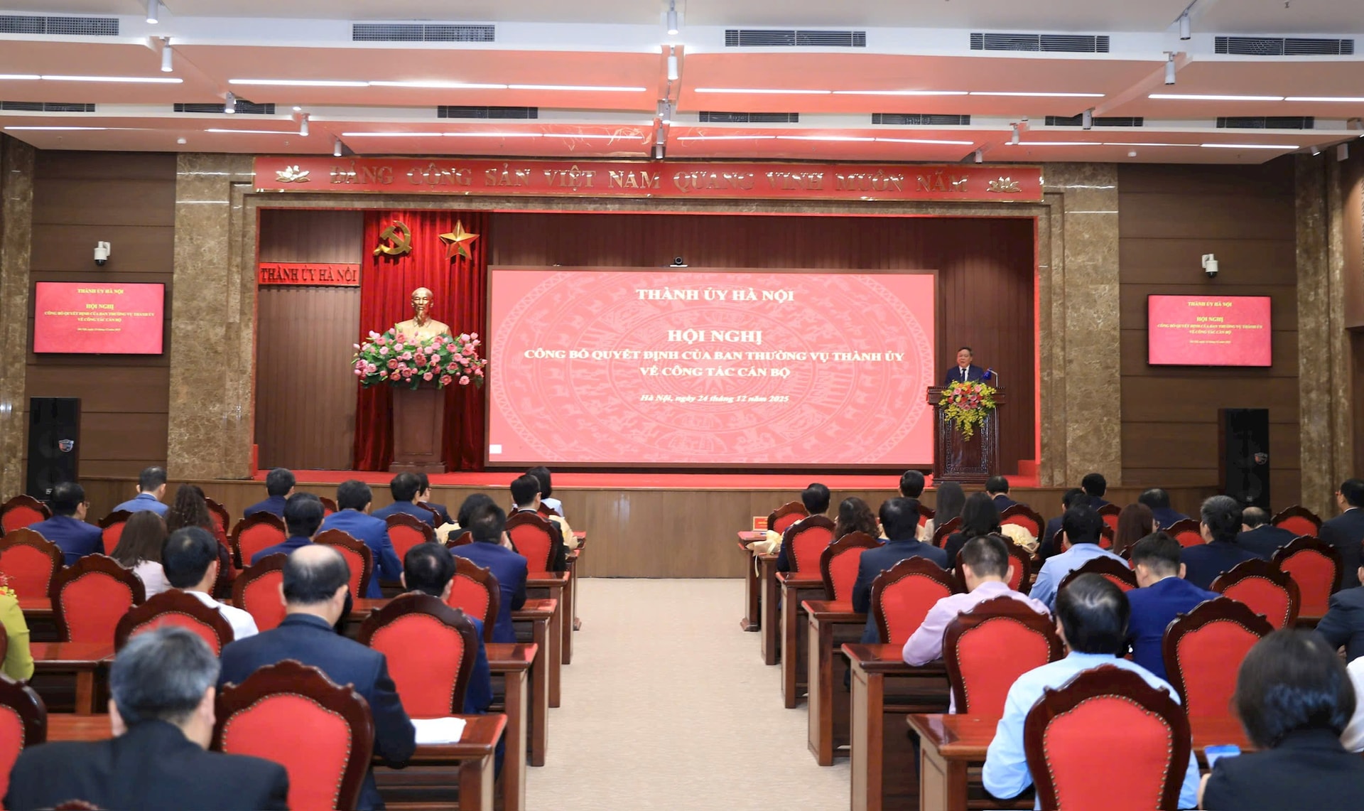 Ngày 24-12, Phó Bí thư Thường trực Thành ủy Hà Nội Nguyễn Văn Phong chủ trì Hội nghị công bố quyết định của Ban Thường vụ Thành ủy về công tác cán bộ. Cùng dự hội nghị có các đồng chí: Phó Bí thư Thành ủy, Chủ tịch HĐND thành phố Hà Nội Phùng Thị Hồng Hà; các Ủy viên Ban Thường vụ Thành ủy: Trưởng ban Tổ chức Thành ủy Hà Minh Hải, Trưởng ban Nội chính Thành ủy Trần Đình Cảnh, Phó Chủ tịch Thường trực HĐND thành phố Trần Thế Cương; Phó Chủ tịch HĐND thành phố Phạm Quí Tiên. Tại hội nghị, Ban Tổ chức Thành ủy đã công bố 9 quyết định của Ban Thường vụ Thành ủy.