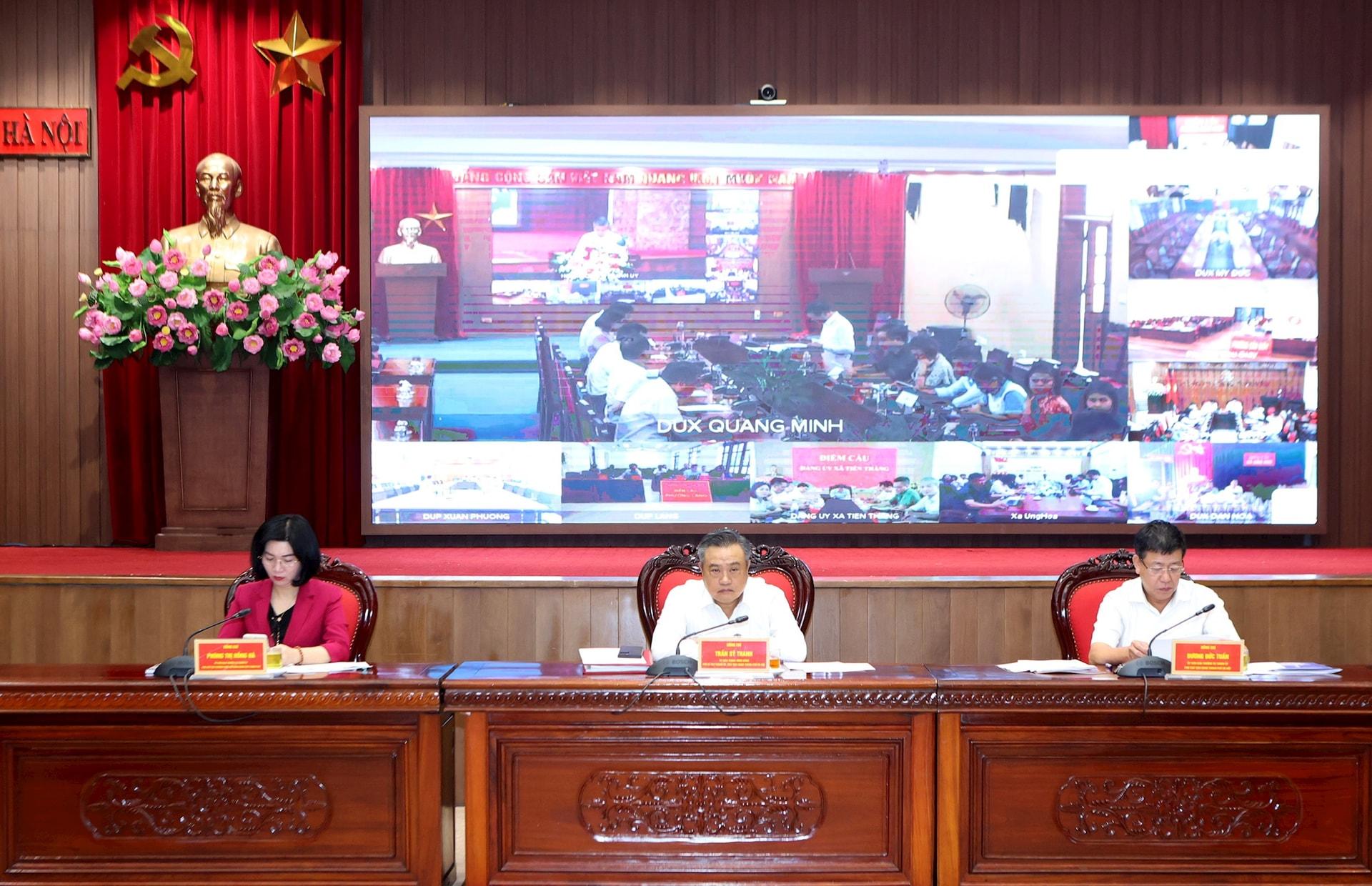 Hội nghị được tổ chức trực tuyến từ điểm cầu Thành ủy Hà Nội kết nối tới các điểm cầu xã, phường toàn thành phố.