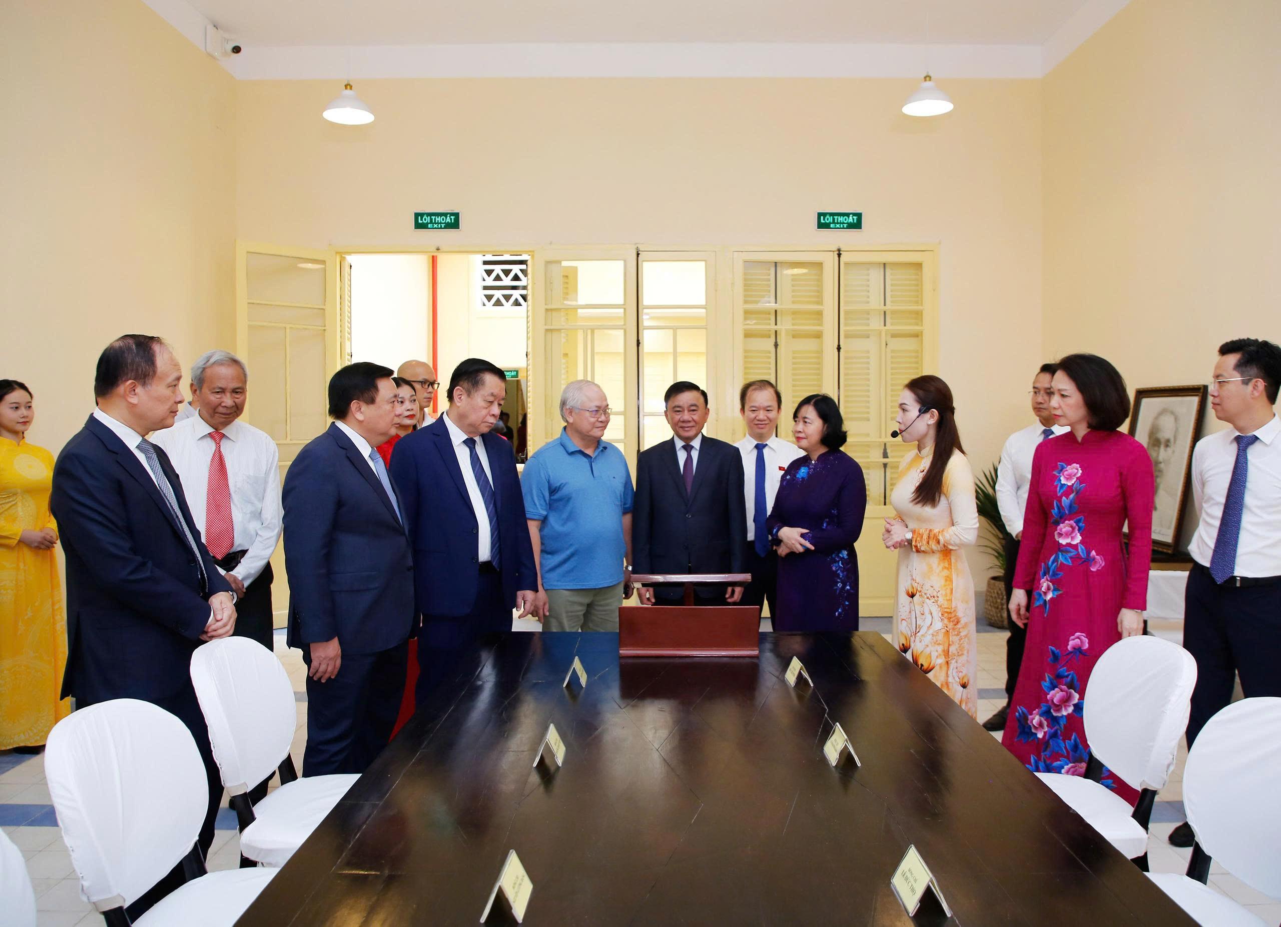 Các đồng chí lãnh đạo Trung ương và thành phố Hà Nội tham quan không gian trưng bày tại di tích 48 Hàng Ngang