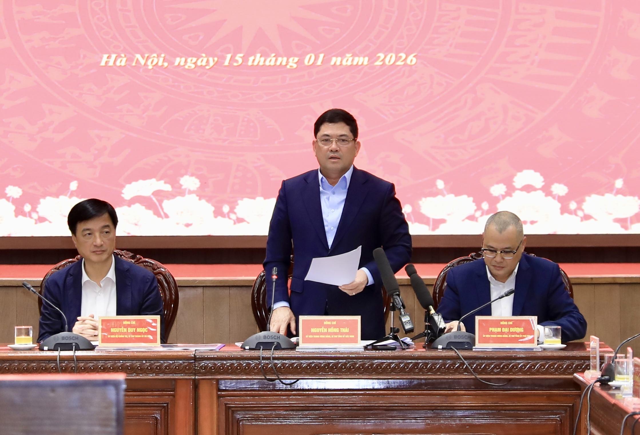 Đồng chí Nguyễn Duy Ngọc cũng đã thông tin về tiến độ trình Luật Thủ đô sửa đổi xin ý kiến Ủy ban Thường vụ Quốc hội, các ban, bộ, ngành Trung ương trong quý I-2026 và trình Quốc hội tại kỳ họp đầu tiên của Quốc hội khóa XVI; trình Bộ Chính trị thay thế Nghị quyết 15-NQ/TW trong tháng 2-2026; trình hồ sơ Quy hoạch tổng thể Thủ đô với tầm nhìn 100 năm theo đúng tiến độ. Lộ trình này đòi hỏi việc giải quyết các phần việc liên quan phải rất khẩn trương. Vì vậy, các tỉnh bám sát lộ trình của Hà Nội để có ý kiến tham góp hiệu quả, qua đó góp phần xây dựng các trụ cột thể chế và quy hoạch phát triển Thủ đô và Vùng Thủ đô mang tính lâu dài, bền vững trong kỷ nguyên mới.