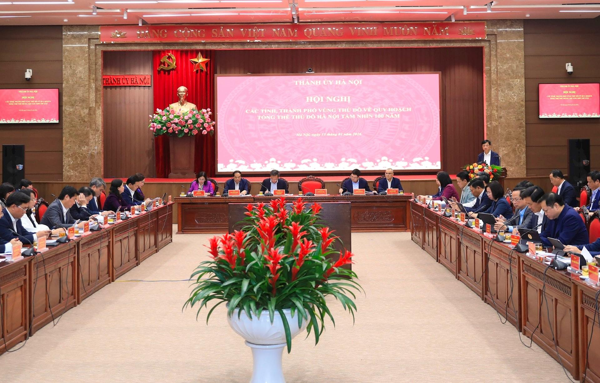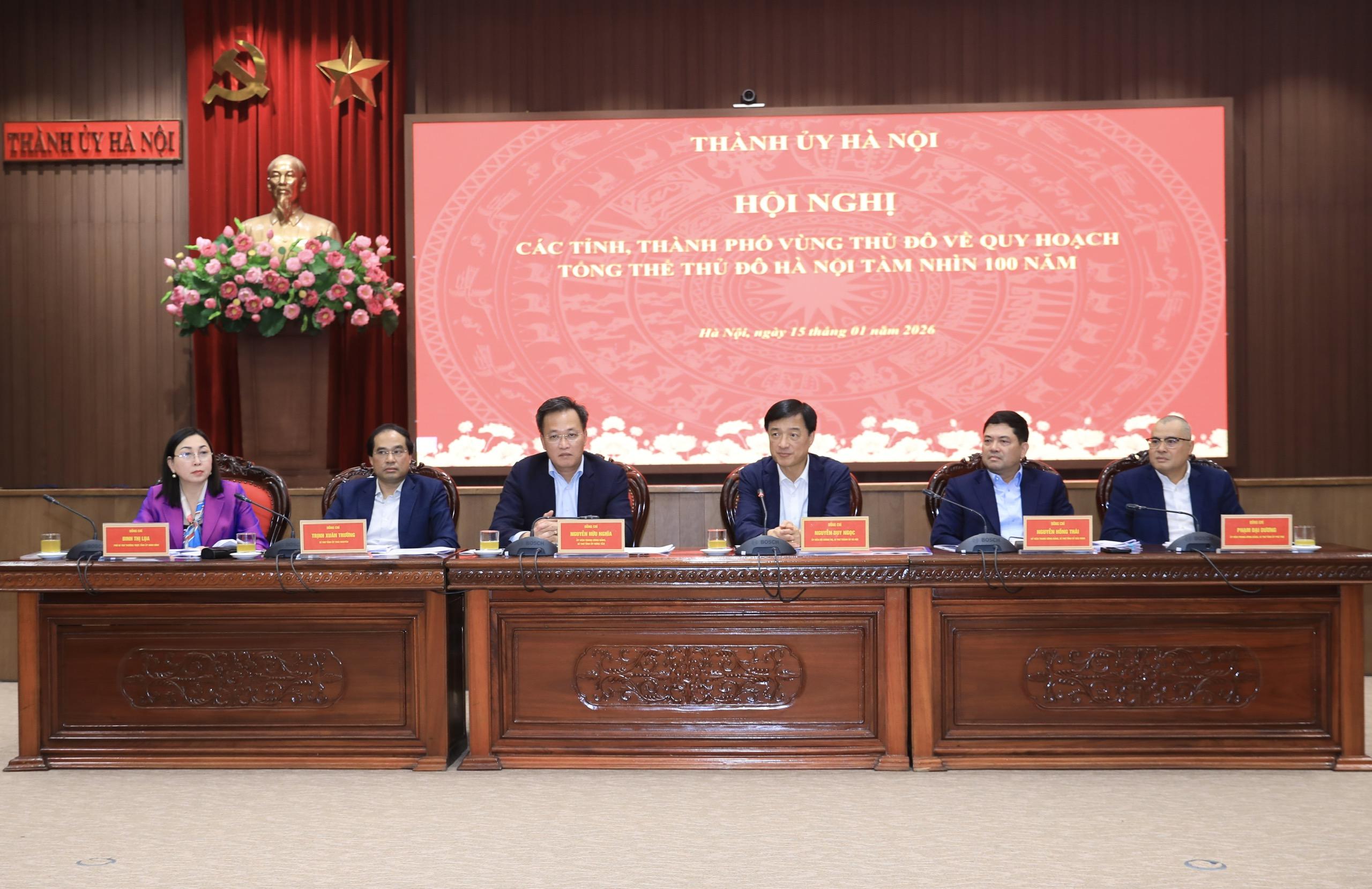 Phát biểu kết luận hội nghị, Bí thư Thành ủy Nguyễn Duy Ngọc thông tin, trong thời gian vừa qua, Hà Nội đã tích cực thực hiện việc xin ý kiến các đồng chí lãnh đạo chủ chốt của Đảng, Nhà nước và các ban, bộ, ngành Trung ương về việc xây dựng Quy hoạch tổng thể Thủ đô với tầm nhìn 100 năm, xây dựng Nghị quyết thay thế Nghị quyết 15-NQ/TW của Bộ Chính trị và sửa đổi Luật Thủ đô, để phục vụ mục tiêu phát triển Thủ đô, vùng và cả nước trong kỷ nguyên mới.