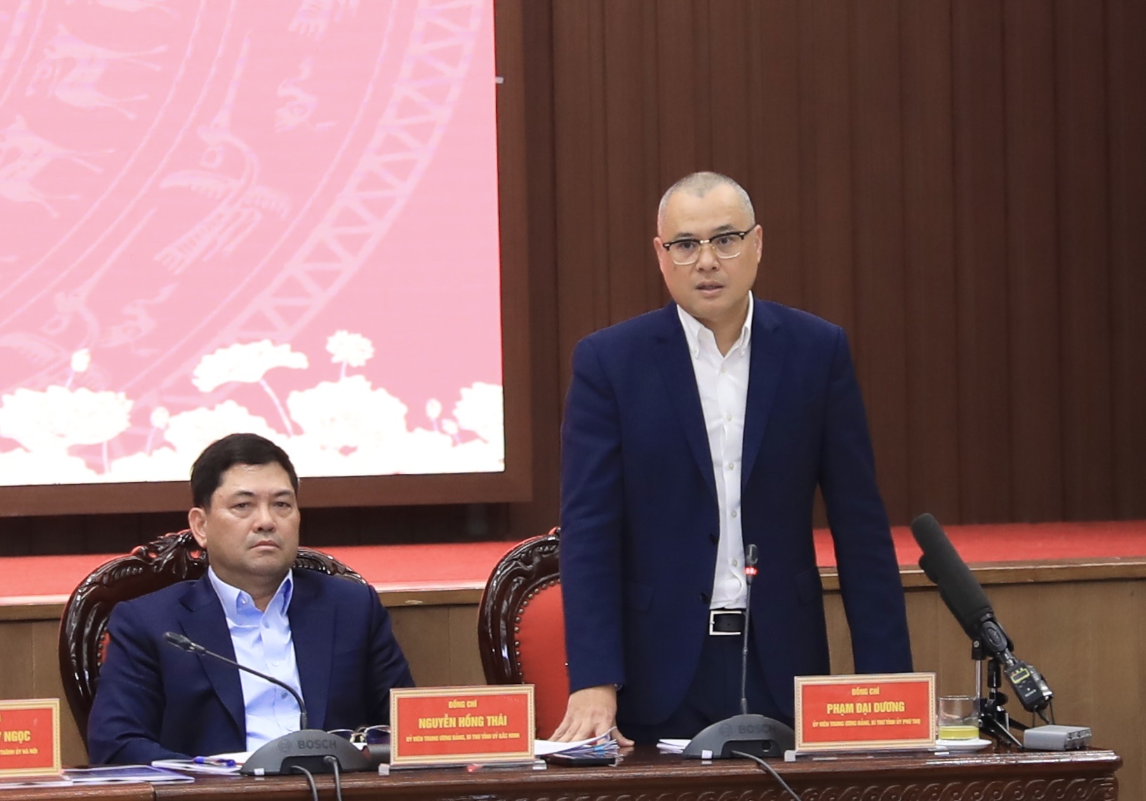 Bí thư Tỉnh ủy Phú Thọ Phạm Đại Dương cho biết, theo quy hoạch điều chỉnh của tỉnh vừa được công bố, tỉnh Phú Thọ định hướng phát triển với vai trò là vùng vệ tinh, gắn kết đồng bộ với quy hoạch Thủ đô Hà Nội. Bí thư Tỉnh ủy Phú Thọ đề nghị thành phố Hà Nội tăng cường phối hợp giải quyết các vấn đề liên vùng, nhất là về môi trường, giao thông, phân bố dân cư và phát triển công nghiệp. Đồng thời chia sẻ chi tiết quy hoạch hai bên bờ sông Hồng để Phú Thọ nghiên cứu nối tiếp cảnh quan dọc sông Hồng lên tới Việt Trì, bảo đảm đồng bộ toàn tuyến khoảng 70km. Ngoài ra, cần phối hợp xây dựng tuyến du lịch dọc sông Hồng và sông Đà, kết nối từ Lào Cai qua Phú Thọ tới Hà Nội, phát huy giá trị văn hóa - lịch sử của hai dòng sông. Cuối cùng là đề nghị có cơ chế đầu tư đồng bộ tại các khu vực giáp ranh, điển hình như khu vực Ba Vì, nhằm bảo đảm tính thống nhất trong phát triển không gian vùng.