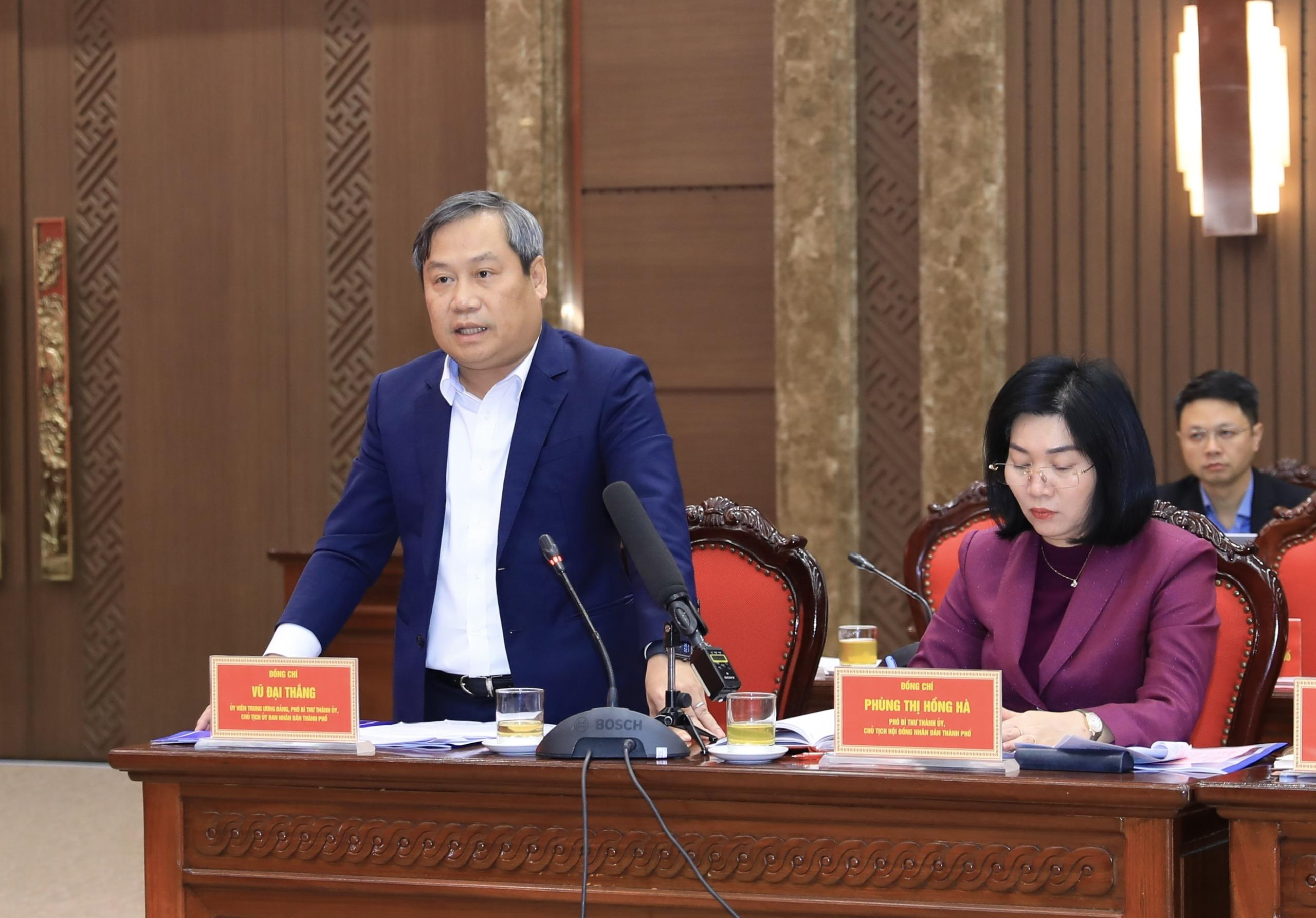 Uỷ viên Trung ương Đảng, Phó Bí thư Thành ủy, Chủ tịch UBND thành phố Vũ Đại Thắng điều hành phần thảo luận tại hội nghị