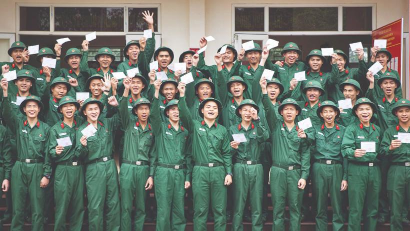 Chiến sĩ mới Trung đội 14, Đại đội 15 (Tiểu đoàn 4, Lữ đoàn 144, Bộ Tổng Tham mưu) hân hoan cầm trên tay phiếu cử tri ở đơn vị mới. (Ảnh: QUANG PHONG)