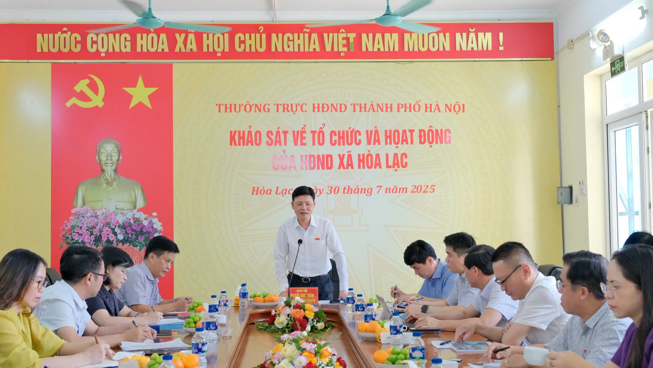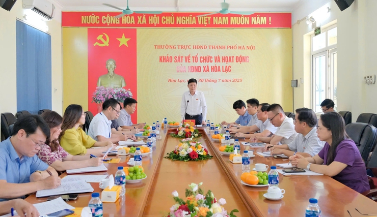 Chiều 30-7, Đoàn khảo sát của Thường trực HĐND thành phố Hà Nội do Thành uỷ viên, Phó Chủ tịch HĐND thành phố Phạm Quí Tiên làm Trưởng đoàn đã làm việc với xã Hòa Lạc về tổ chức và hoạt động của HĐND xã.