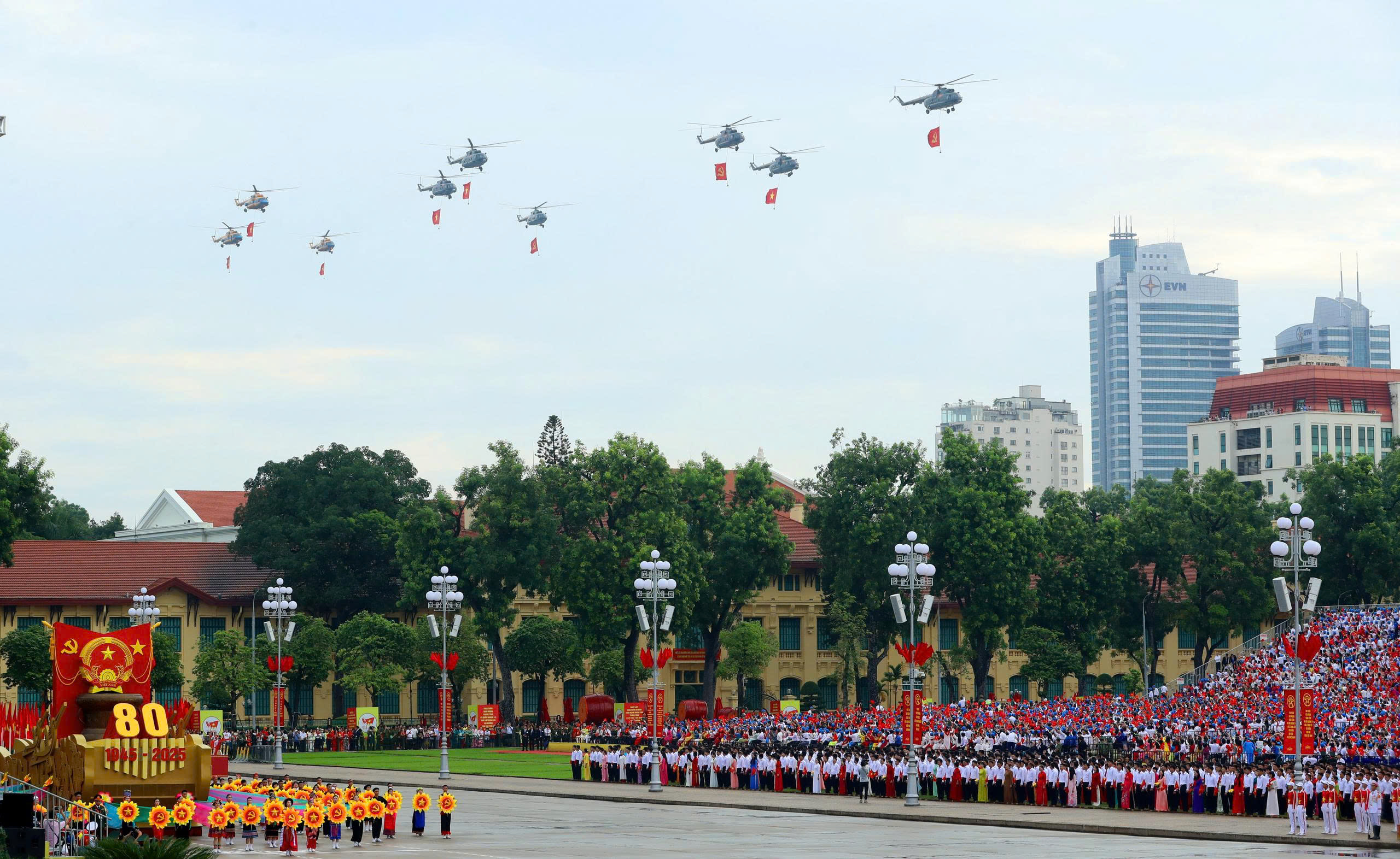Sáng 2-9, tại Quảng trường Ba Đình, Thủ đô Hà Nội, Ban Chấp hành Trung ương Đảng, Quốc hội, Chủ tịch nước, Chính phủ, Ủy ban Trung ương Mặt trận Tổ quốc Việt Nam và thành phố Hà Nội tổ chức trọng thể Lễ kỷ niệm, diễu binh, diễu hành 80 năm Cách mạng Tháng Tám thành công (19/8/1945-19/8/2025) và Quốc khánh nước Cộng hòa XHCN Việt Nam(2/9/1945-2/9/2025).